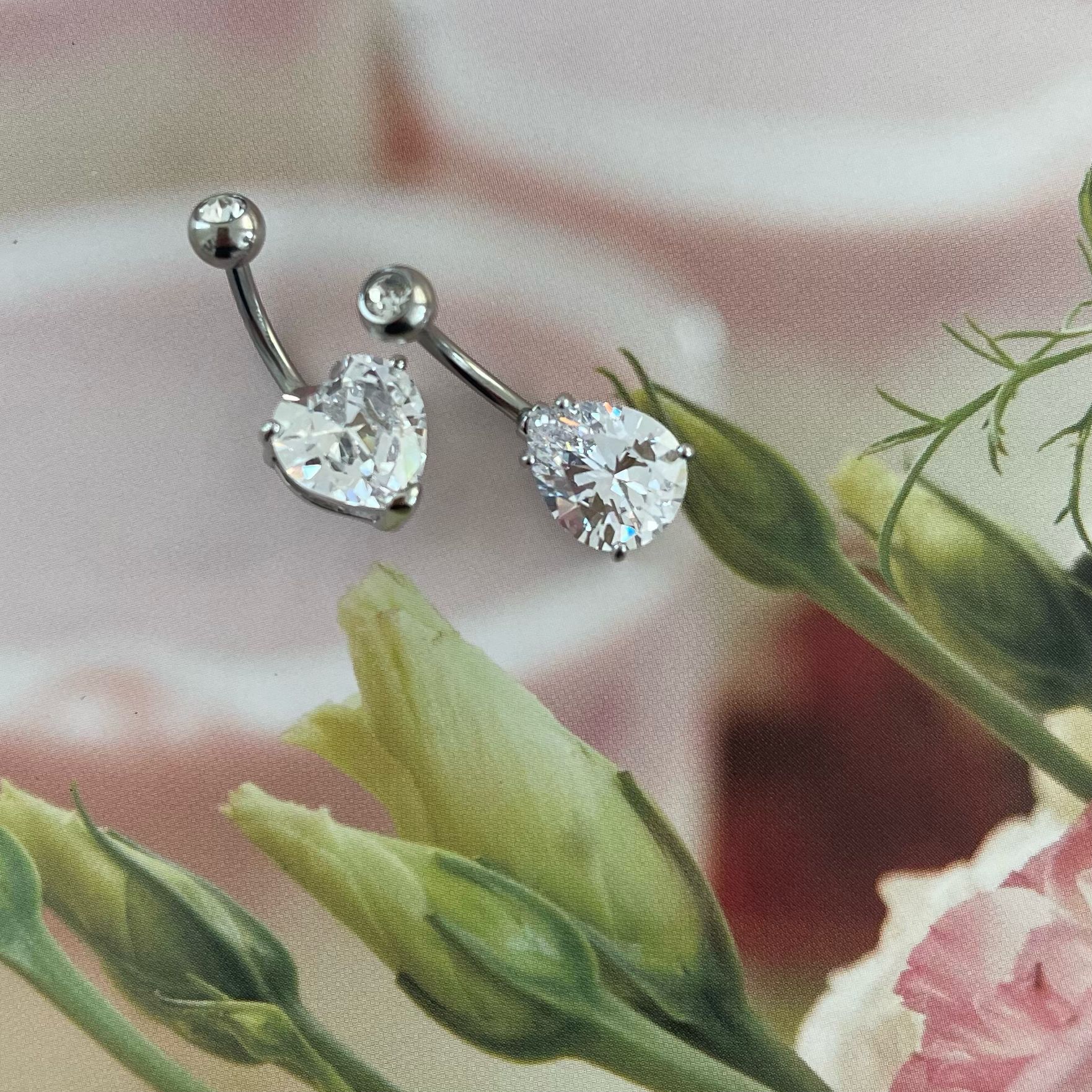 עגיל פירסינג בטבור – זירקון 10 ממ טיפה לבנה