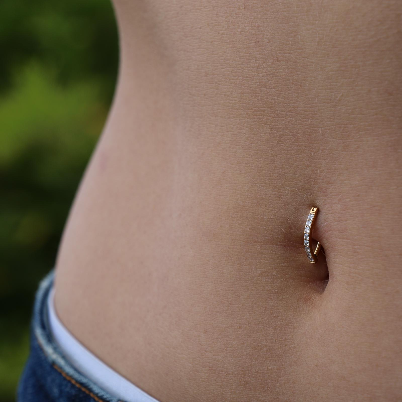 עגיל פירסינג בטבור מטיטניום וציפוי זהב קליקר– קריסטלים רבועים לבנים