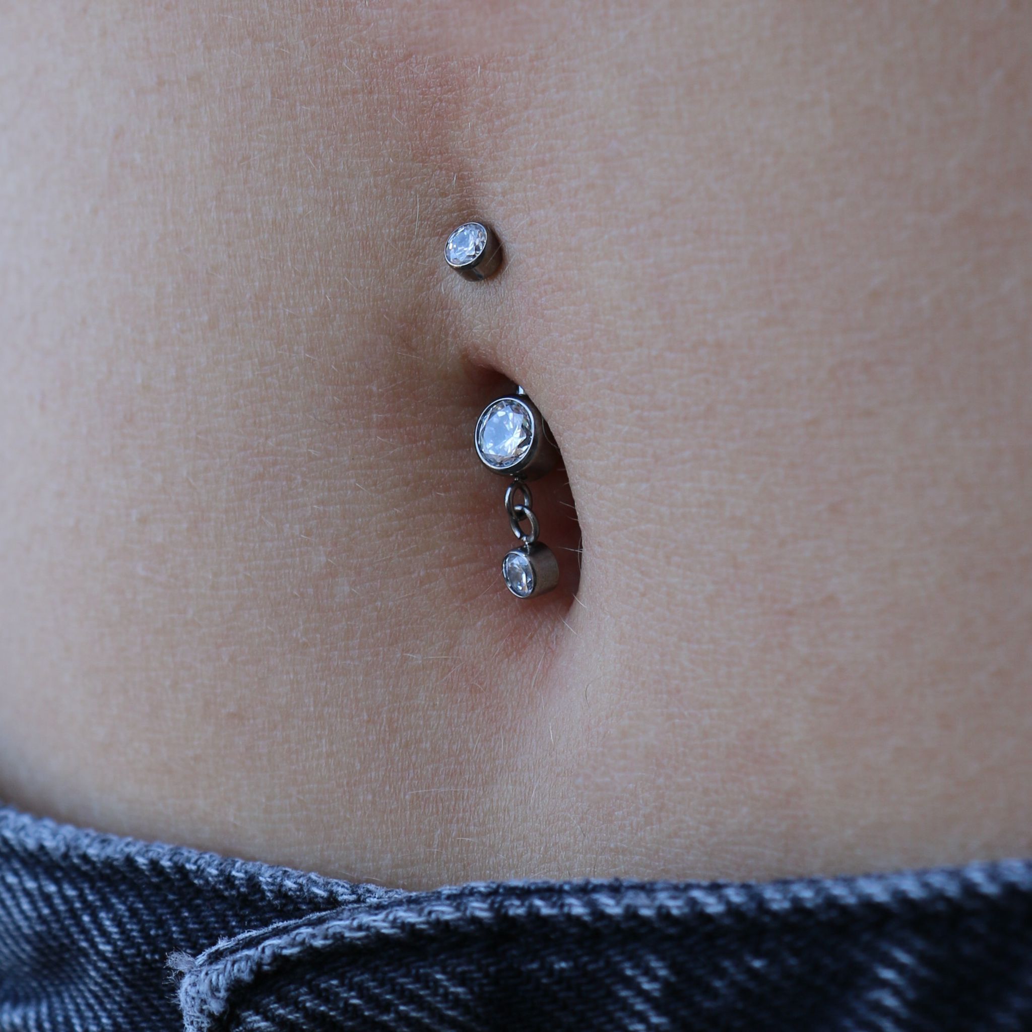 עגיל פירסינג בטבור מטיטניום – עיגולים קריסטלים לבנים