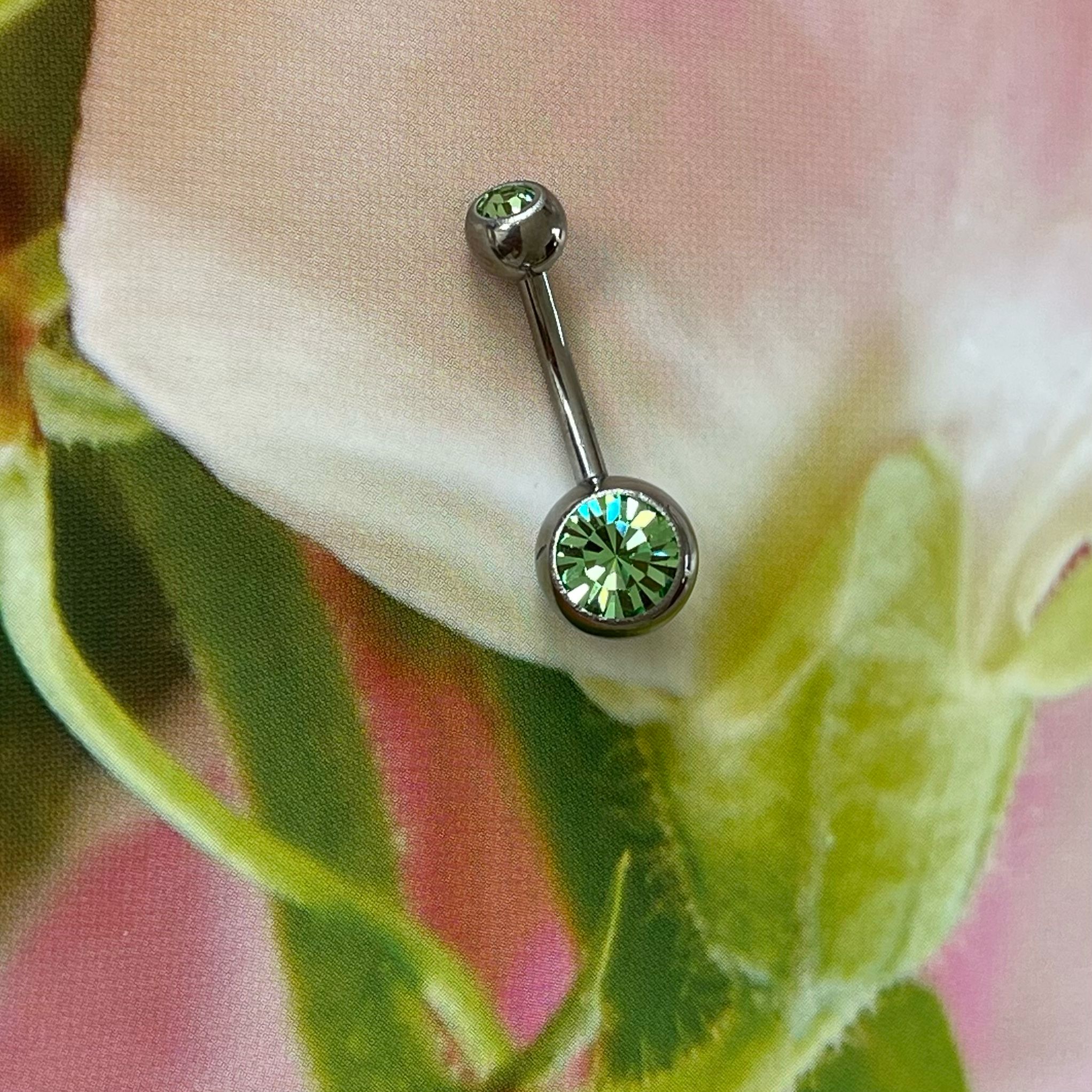 עגיל פירסינג בטבור – מטיטניום קריסטלים ירוקים