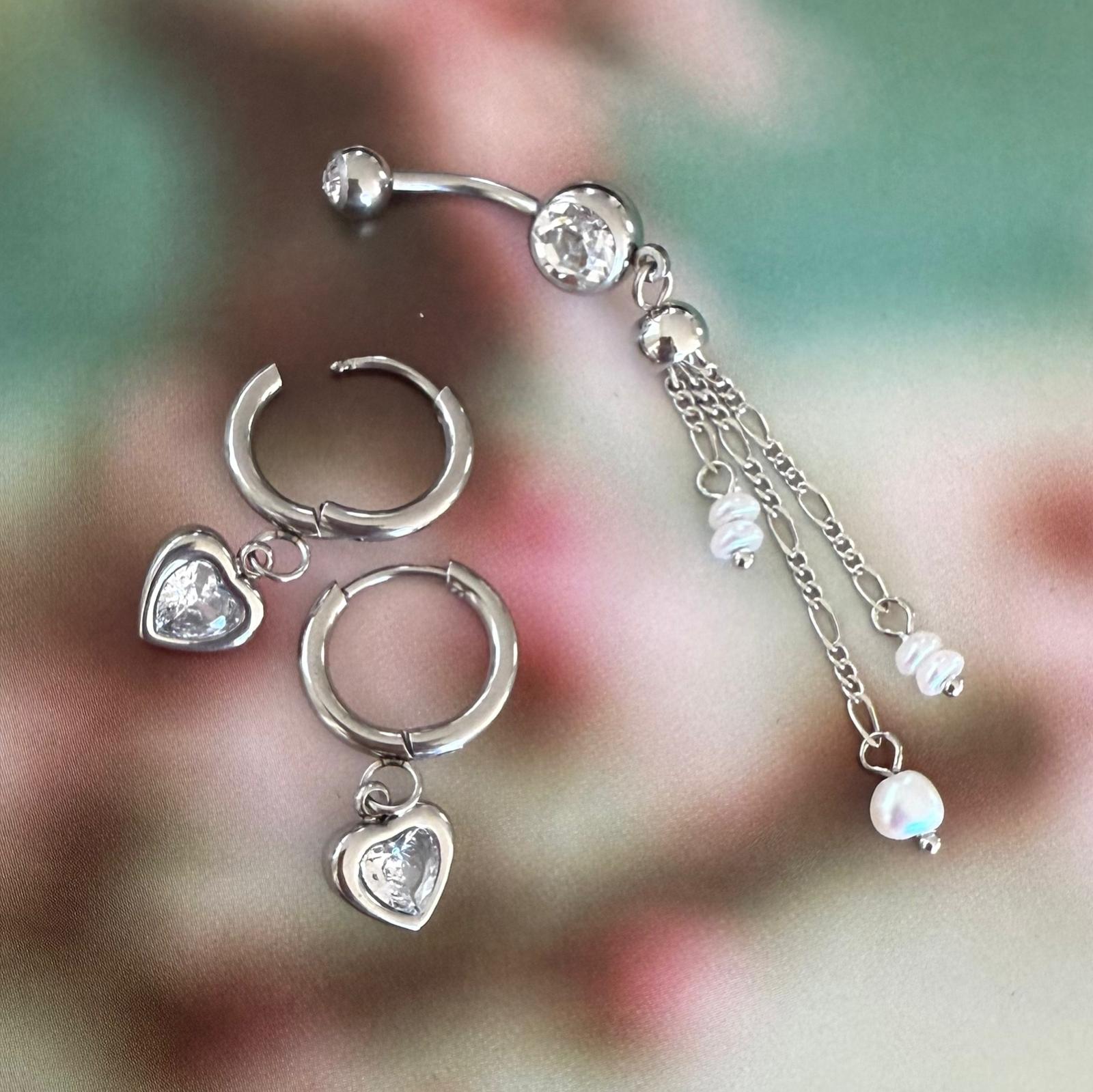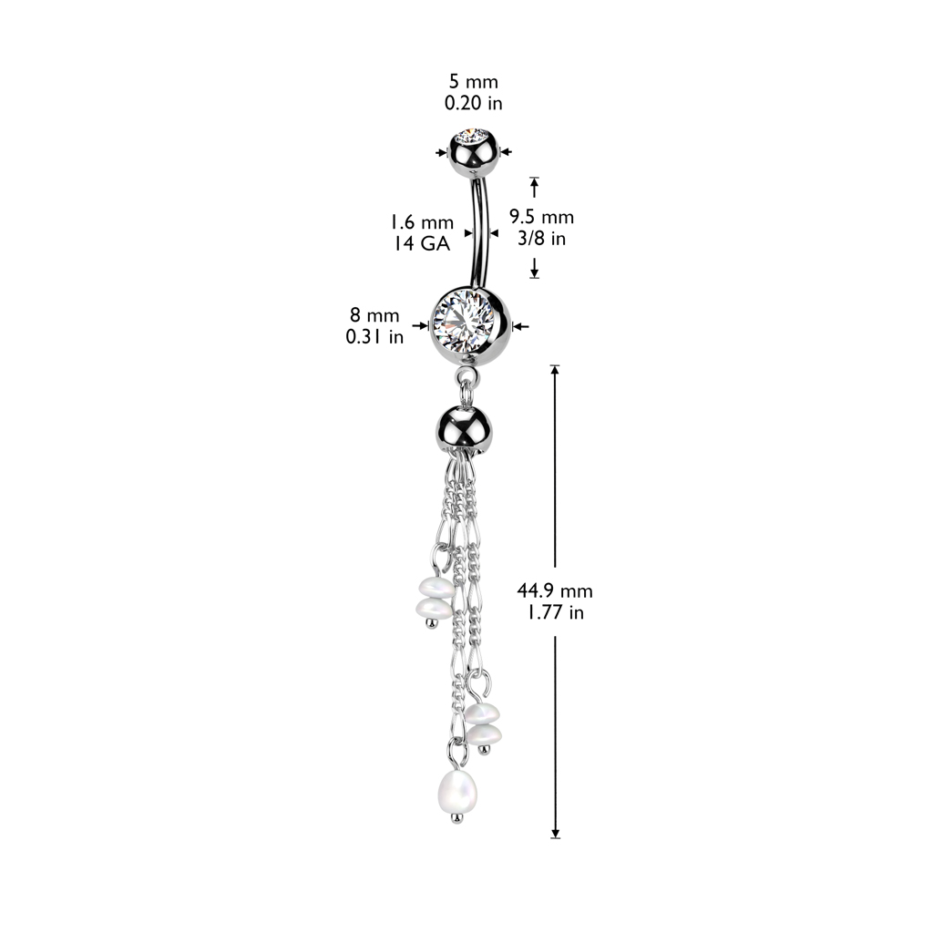 עגיל פירסינג בטבור – עיגול כדור ושלוש שרשראות עם פנינים