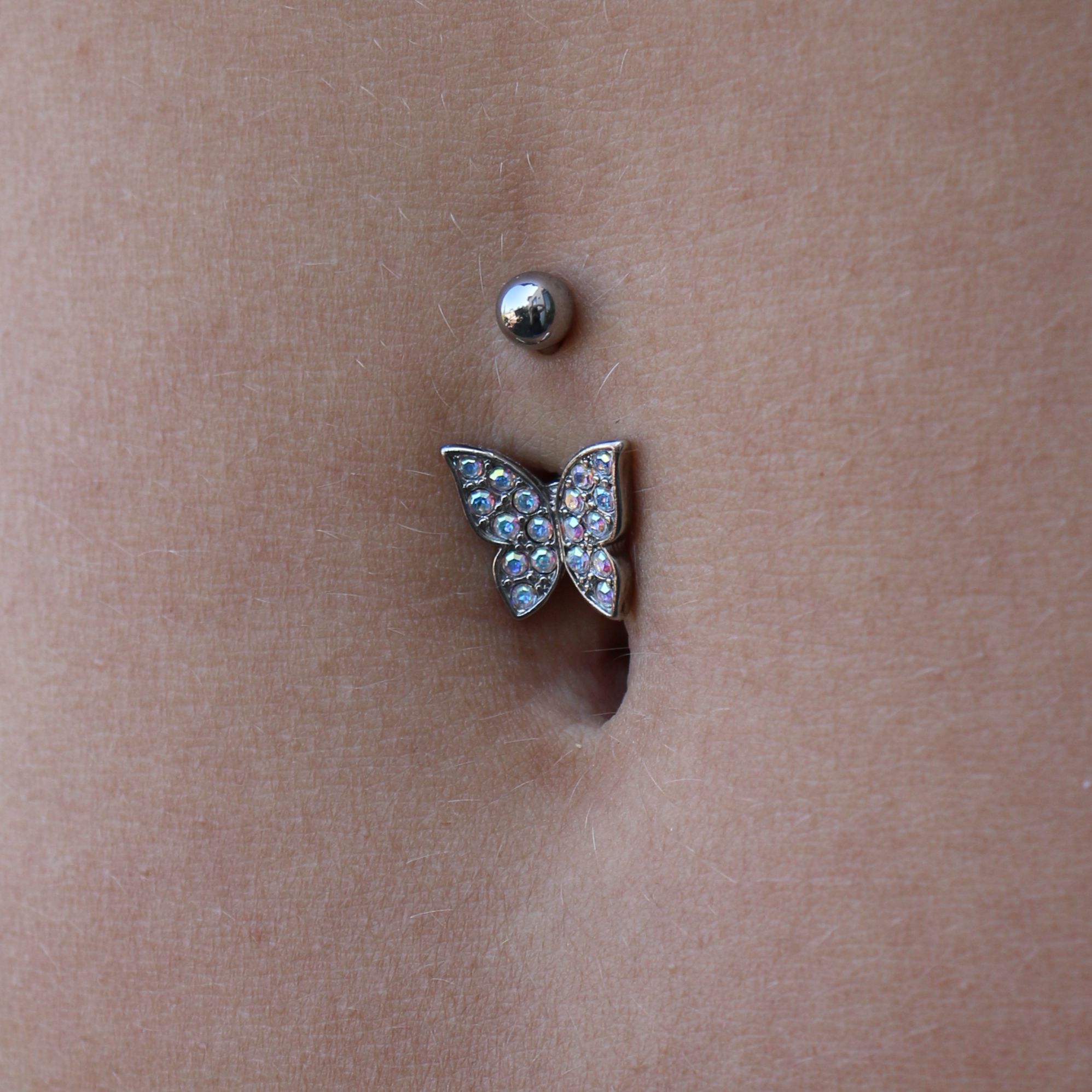 עגיל פירסינג בטבור – פרפר עם קריסטלים ריינבו