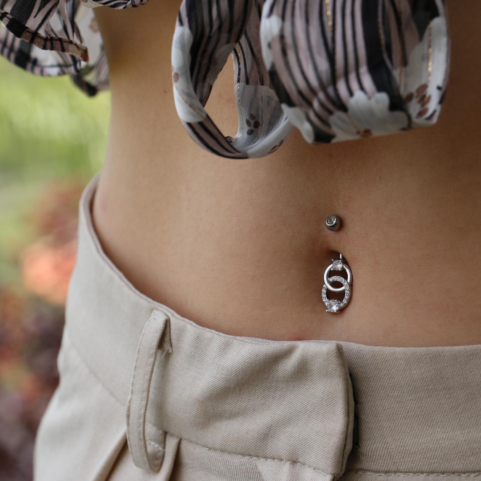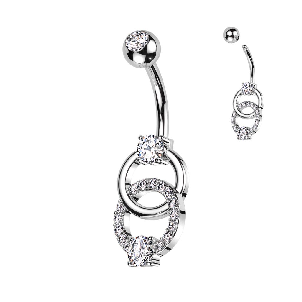 עגיל פירסינג בטבור – 2 עיגולים עם קריסטלים לבנים