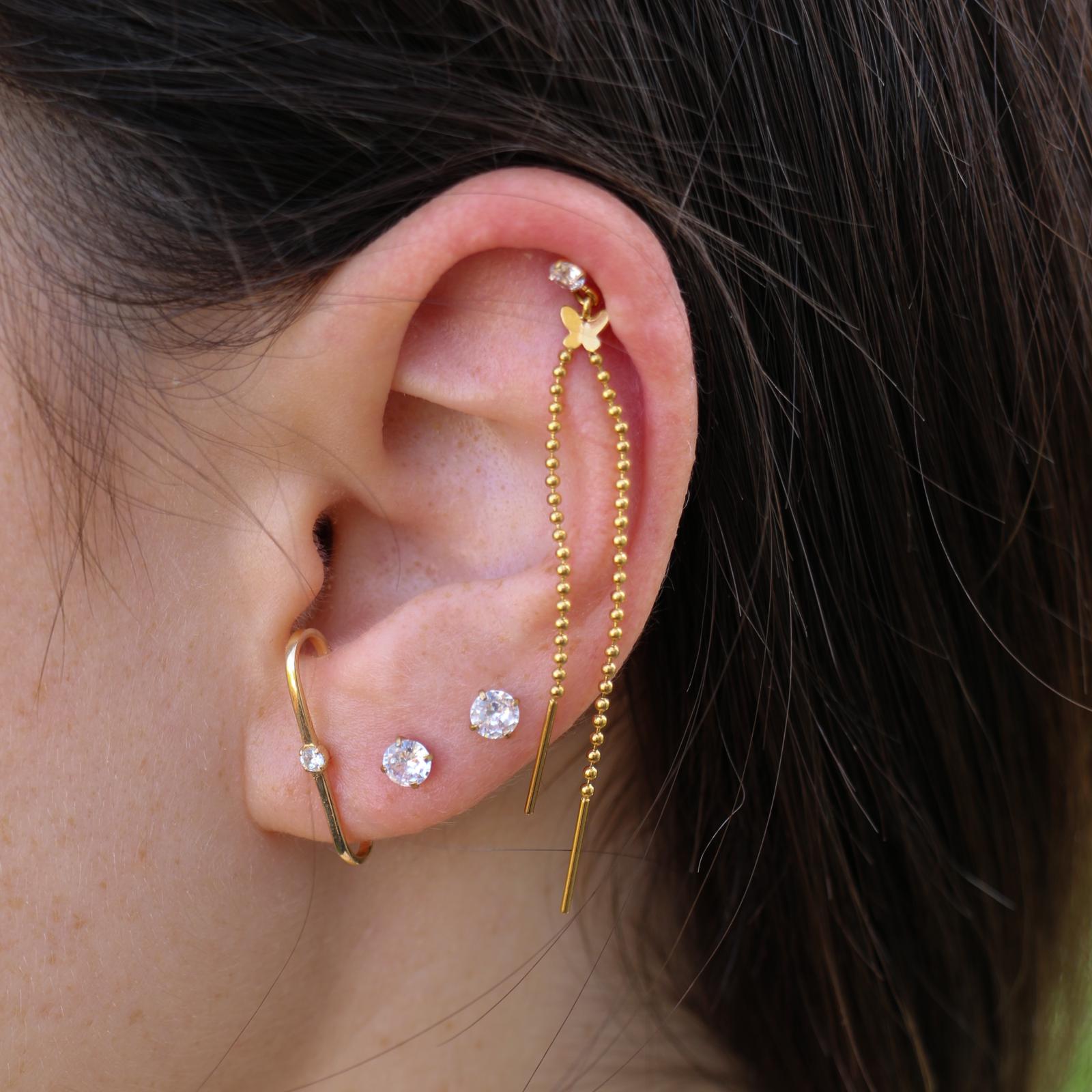עגיל פירסינג הליקס מסרג'יקל סטיל וציפוי זהב – עיגול קריסטל לבן פרפר ושרשראות כדורים