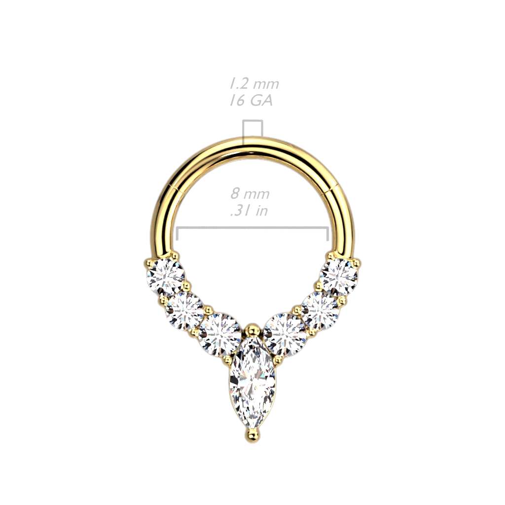 פירסינג עגיל הליקס / ספטום מסרג'יקל סטיל וציפוי זהב – קליקר עם עיגולים וטיפה קריסטלים לבנים