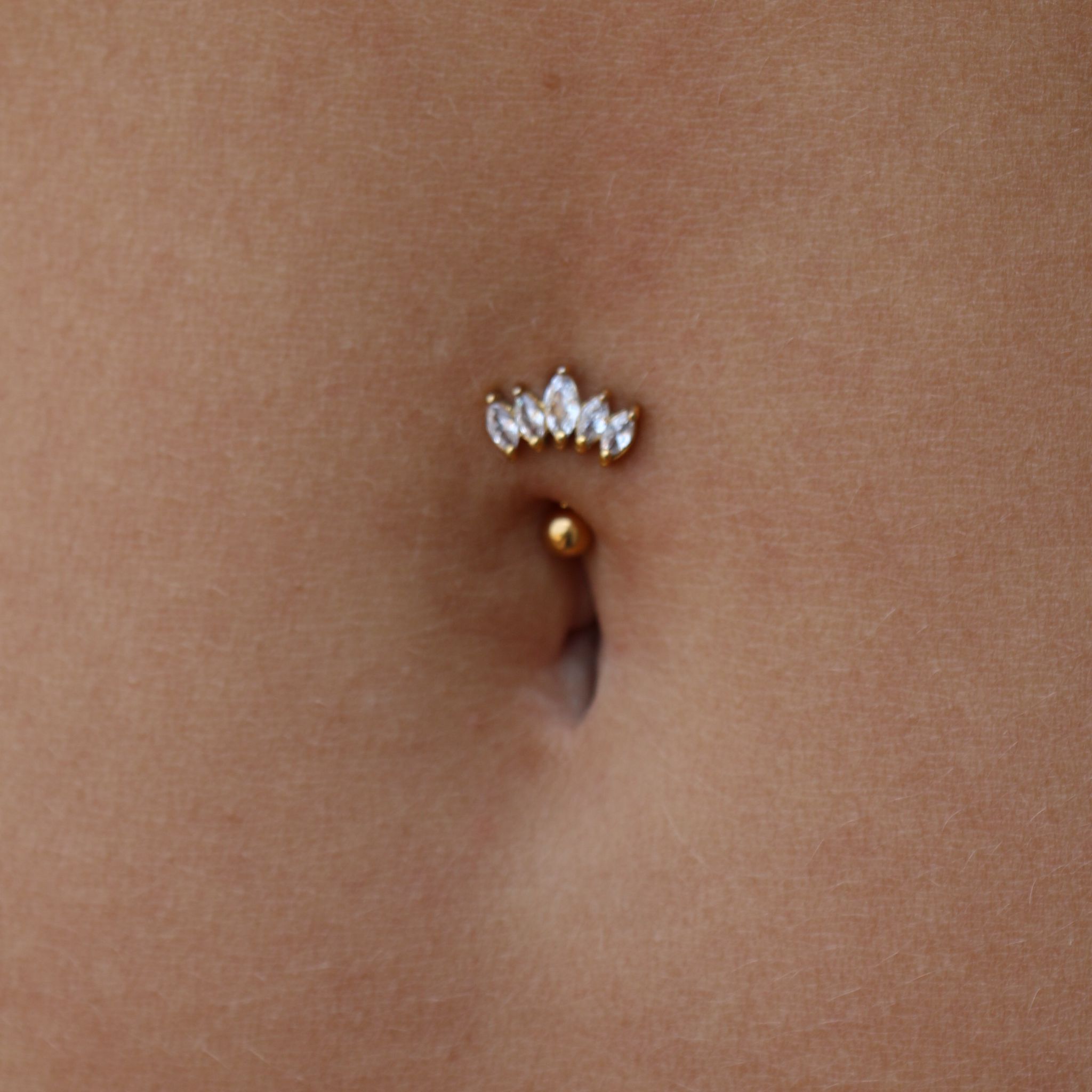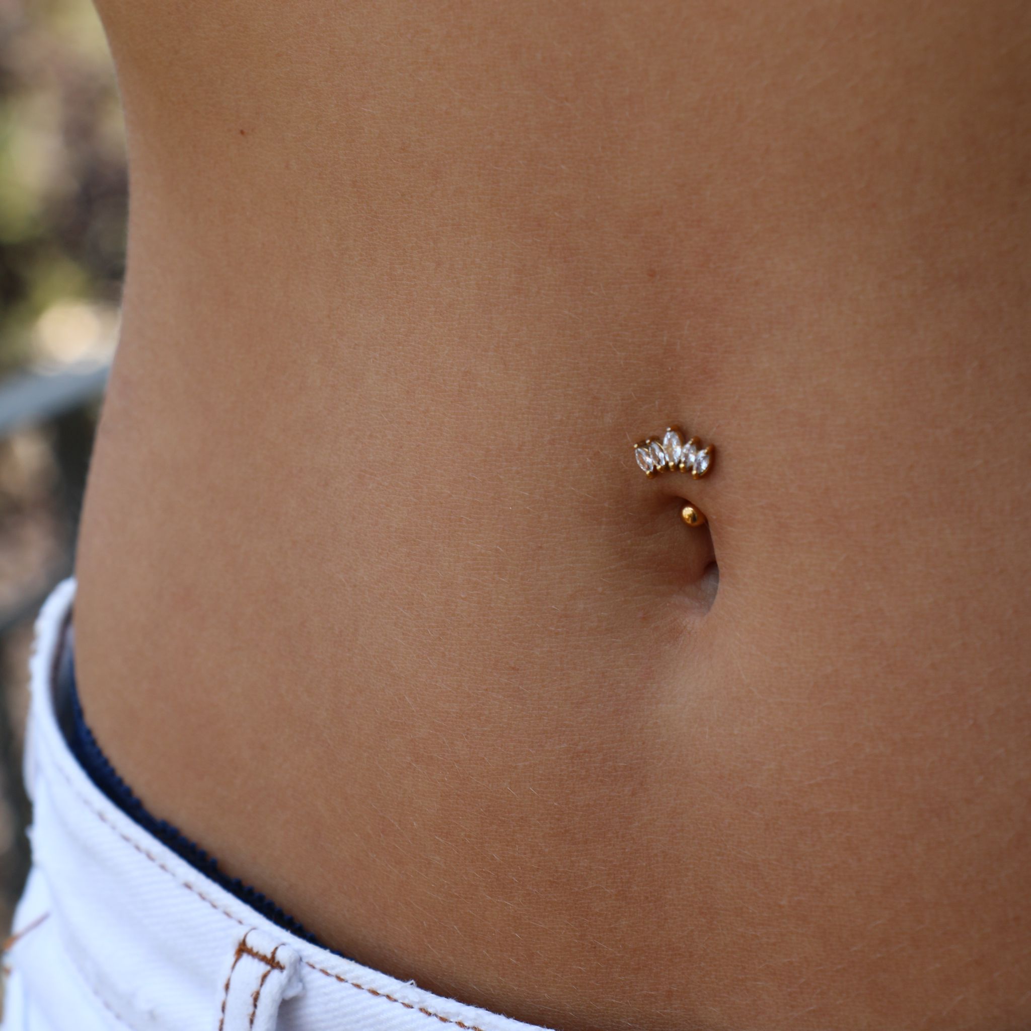 עגיל פירסינג טבור – מציפוי זהב קשת של מרקיזים לבנים