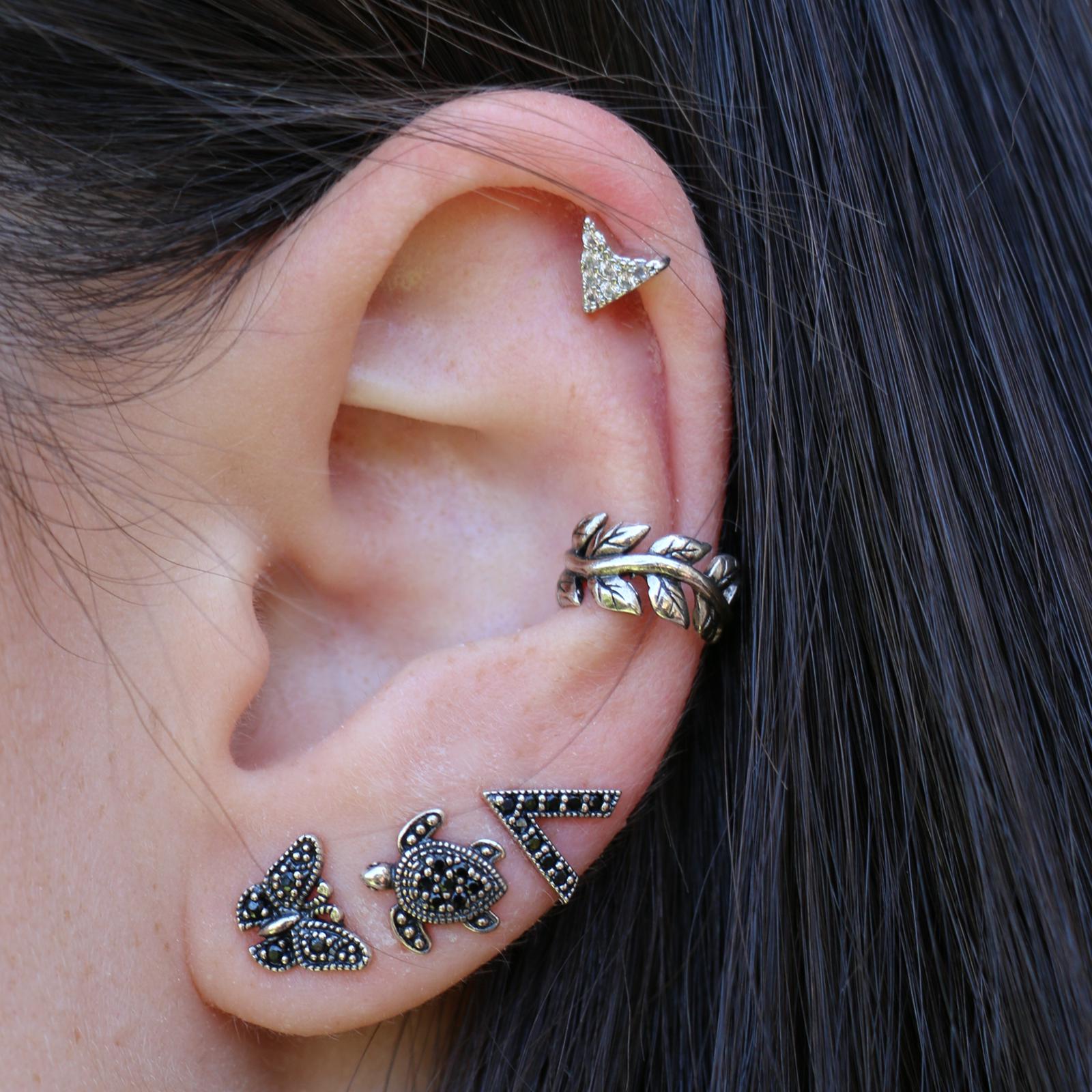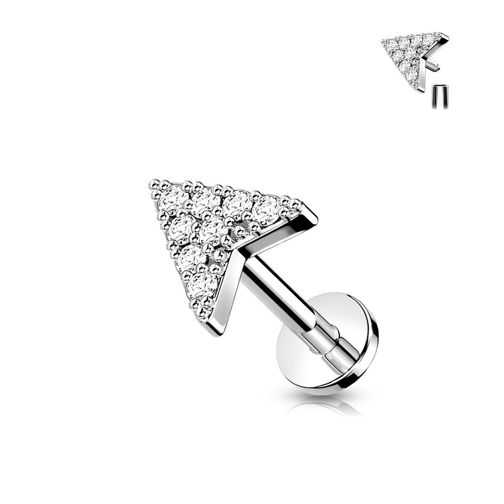 עגיל פירסינג טראגוס / הליקס / קונץ' / פלאט – חץ עם קריסטלים לבנים