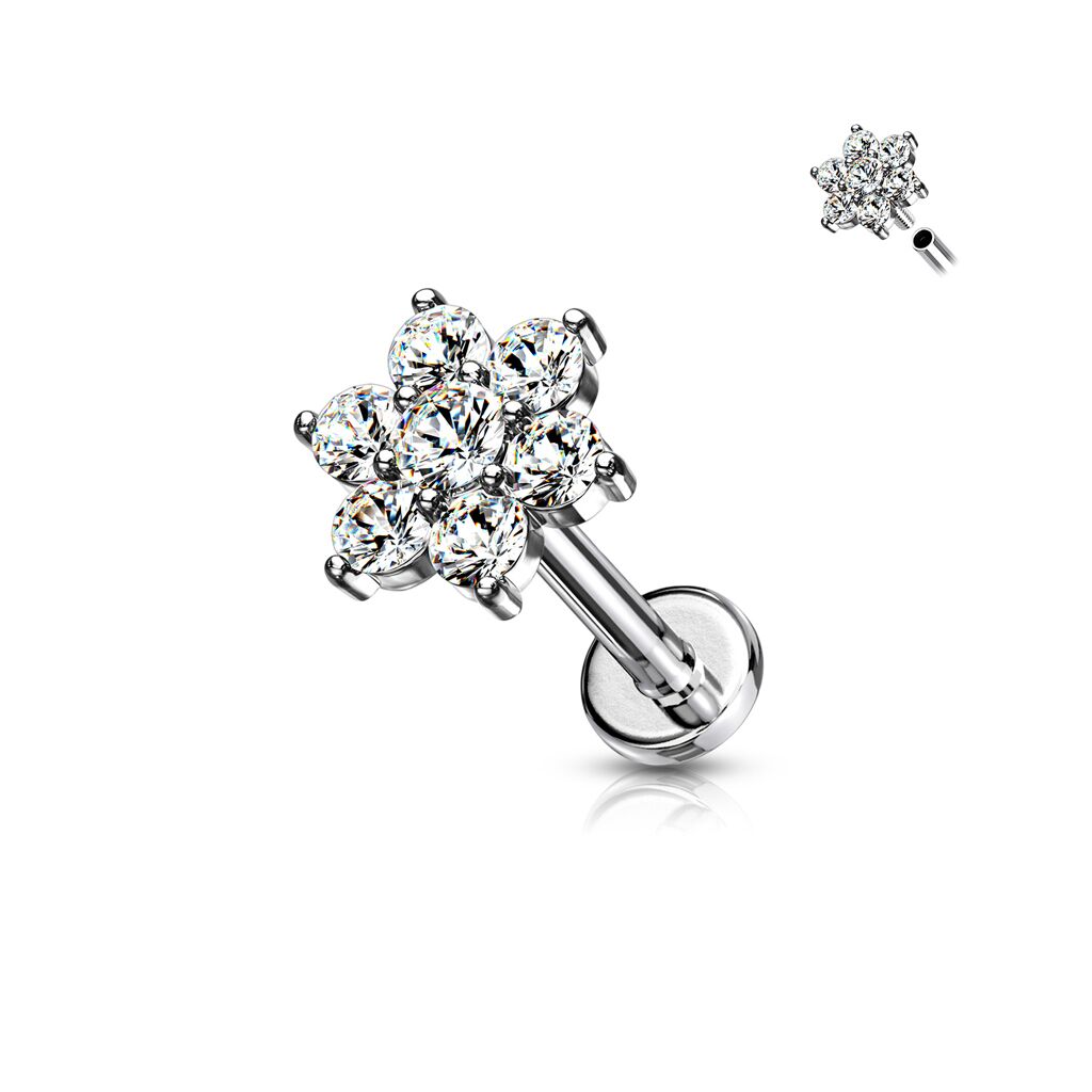 עגיל פירסינג טראגוס / הליקס / קונץ' / פלאט – פרח עם קריסטלים לבנים