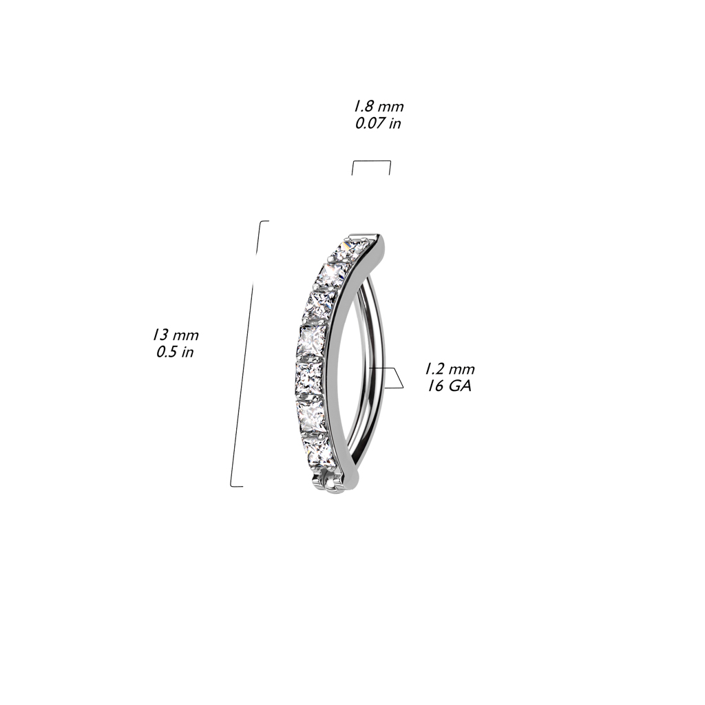 עגיל רוק / דיית / טבור קטנטן קליקר מטיטניום וציפוי זהב – קריסטלים רבועים לבנים