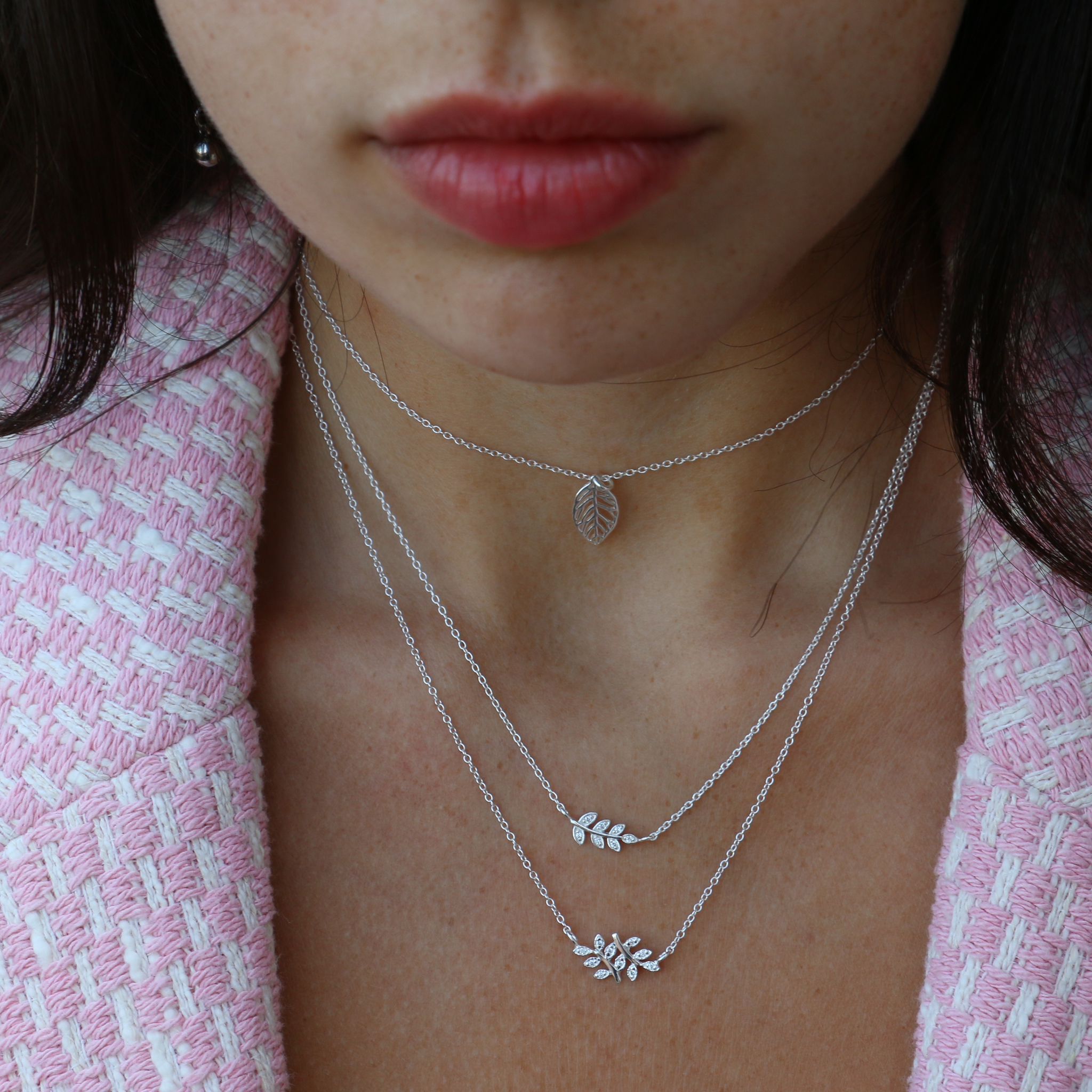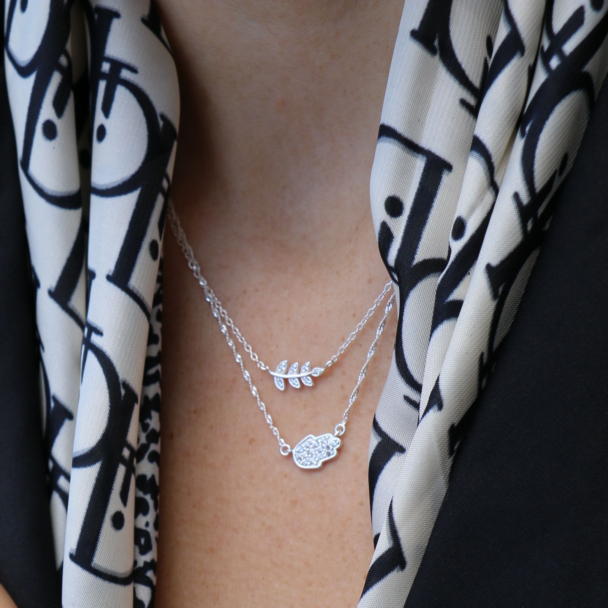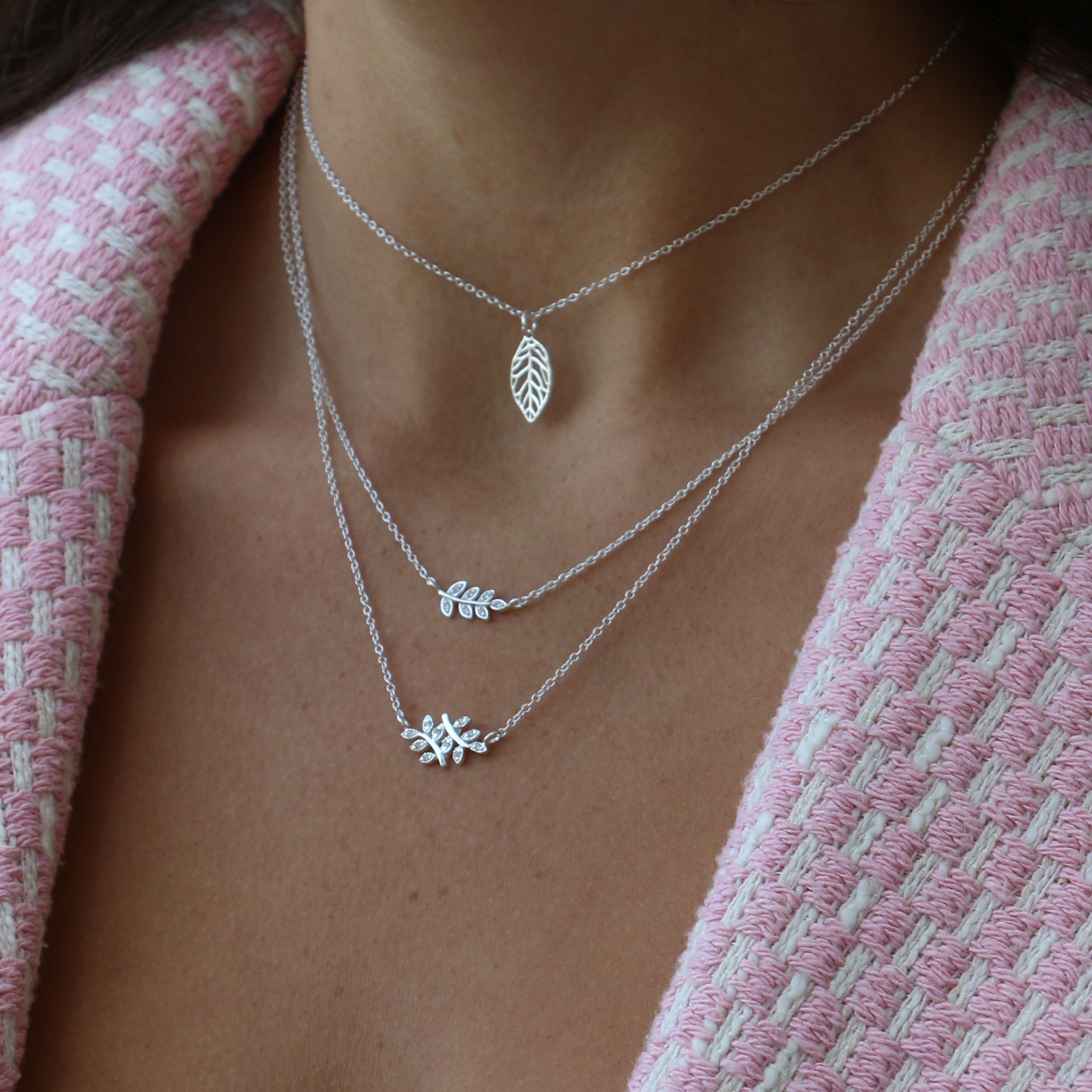 שרשרת מכסף – גבעול ועלים עם קריסטלים לבנים