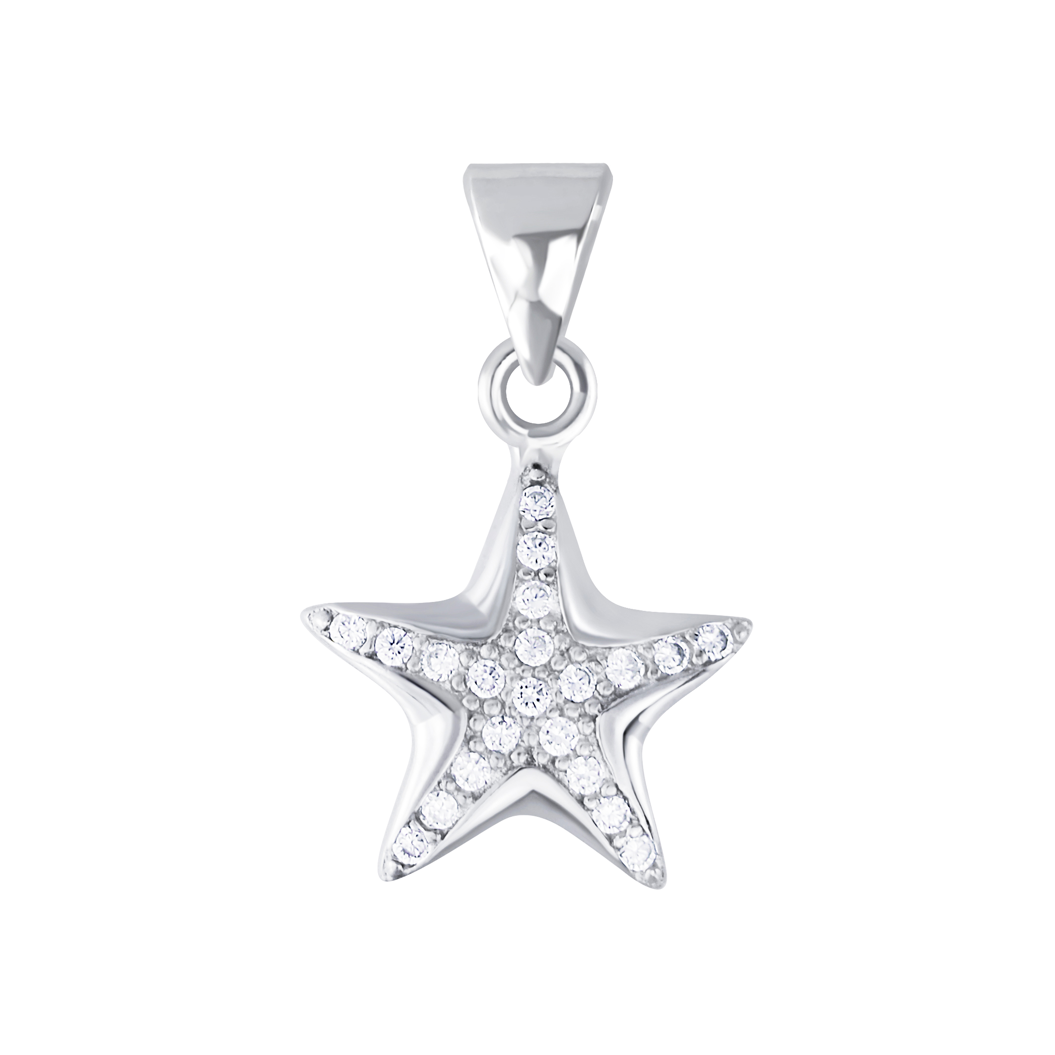 שרשרת מכסף וציפוי רודיום כוכב עם קריסטלים לבנים