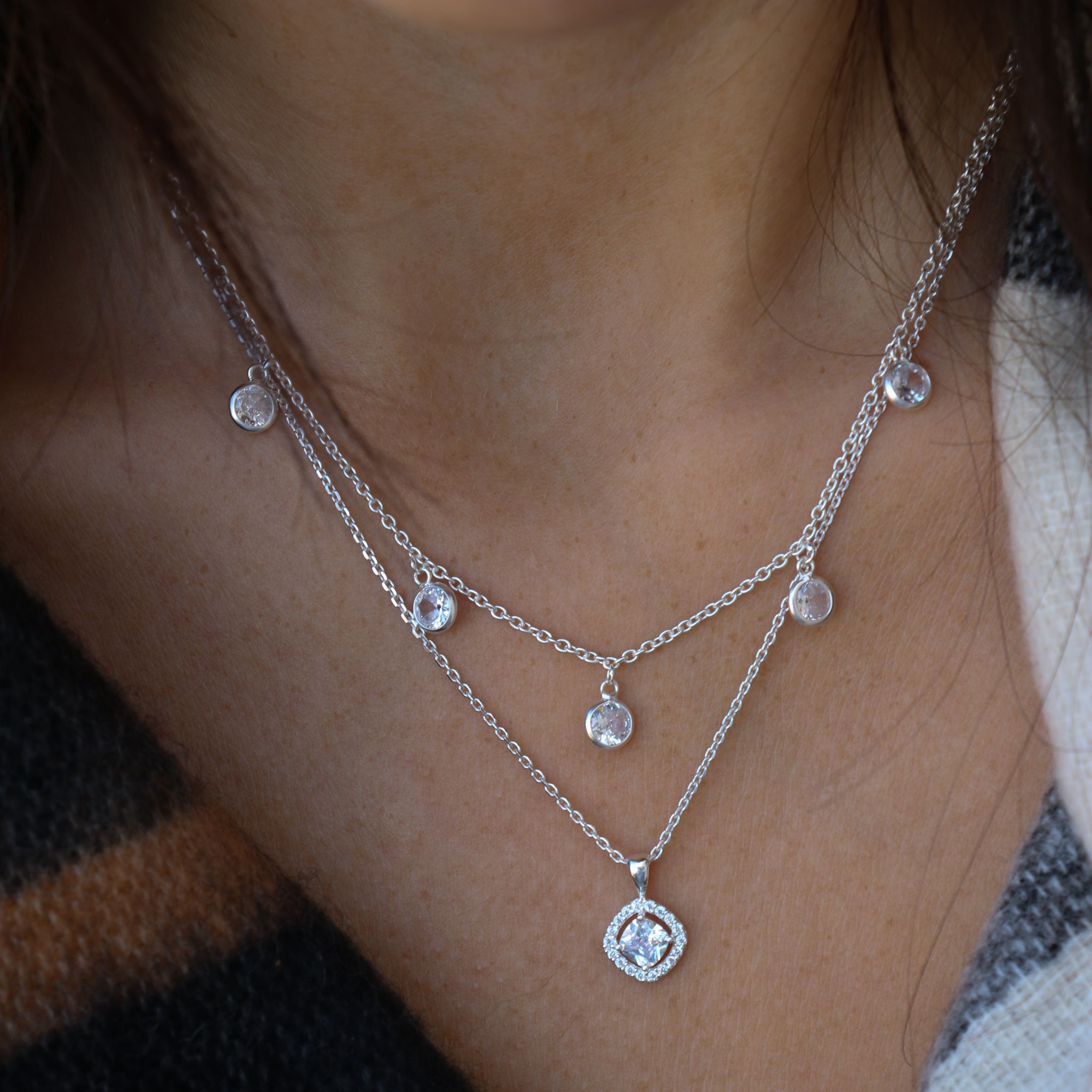 שרשרת מכסף – זירקון מעויין עם וקריסטלים לבנים