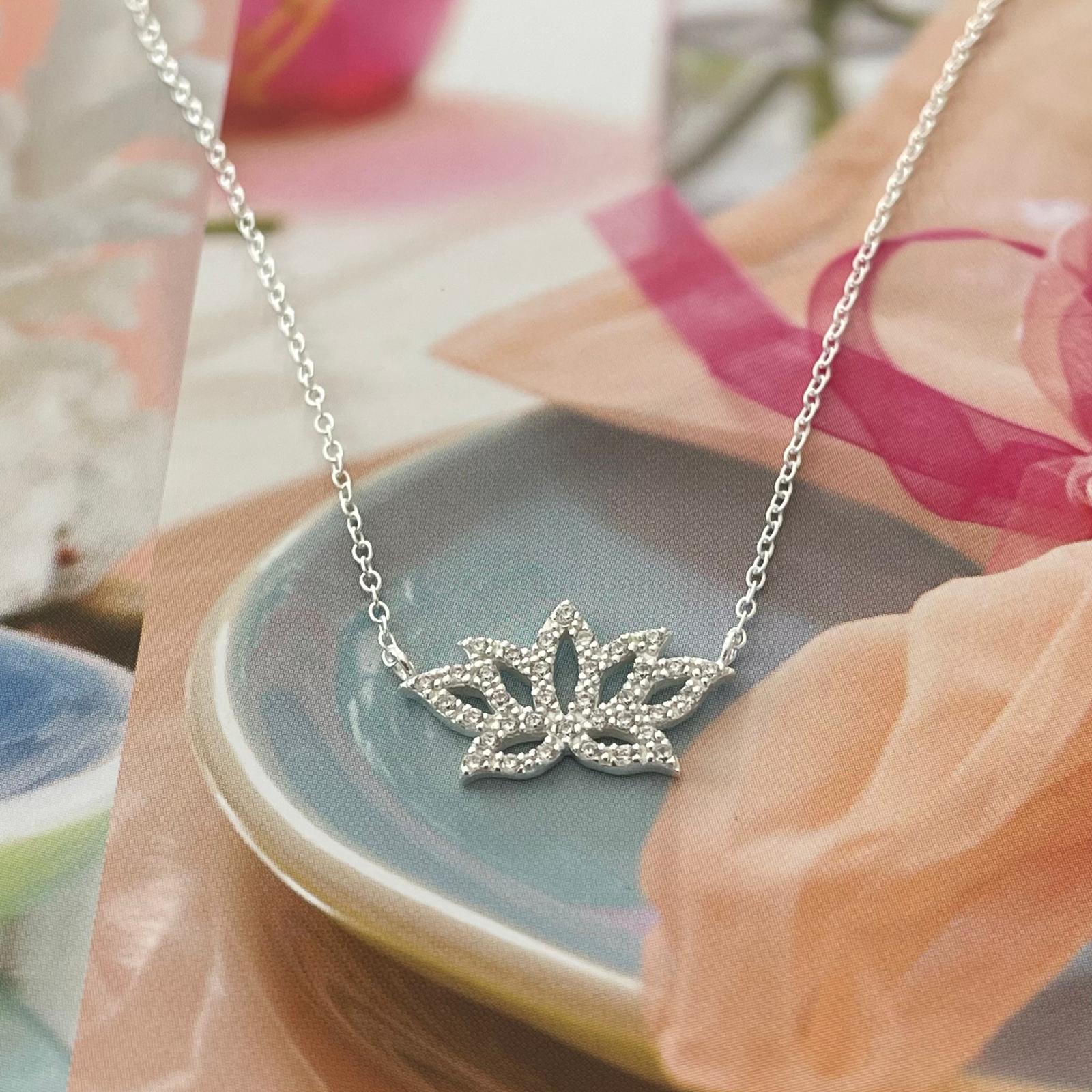 שרשרת מכסף – לוטוס עם קריסטלים לבנים