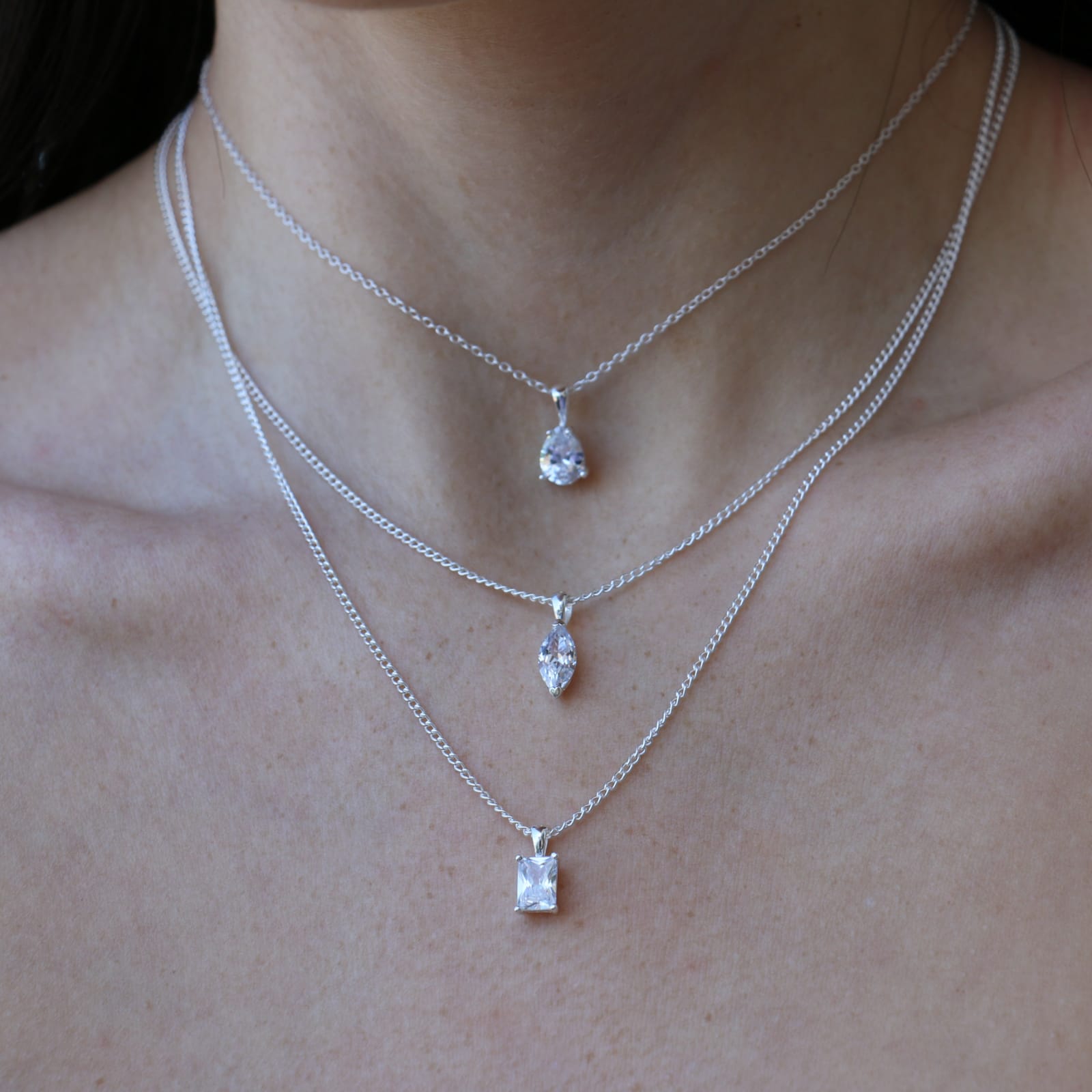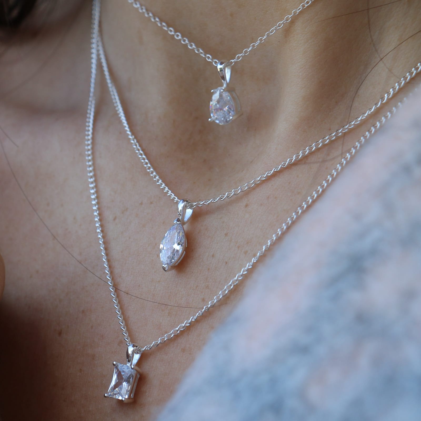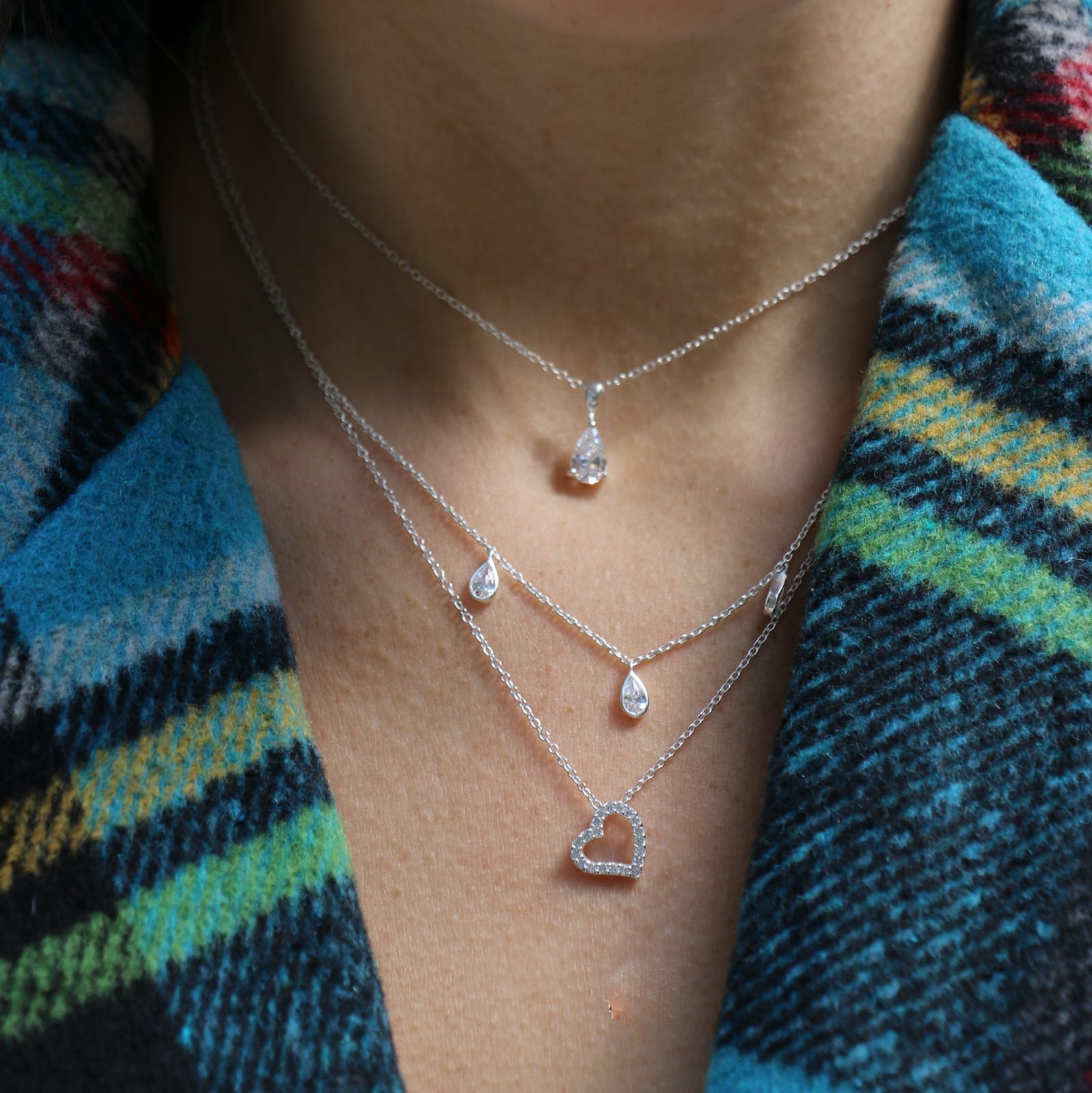 שרשרת מכסף צ'וקר – זירקוניה טיפה לבן