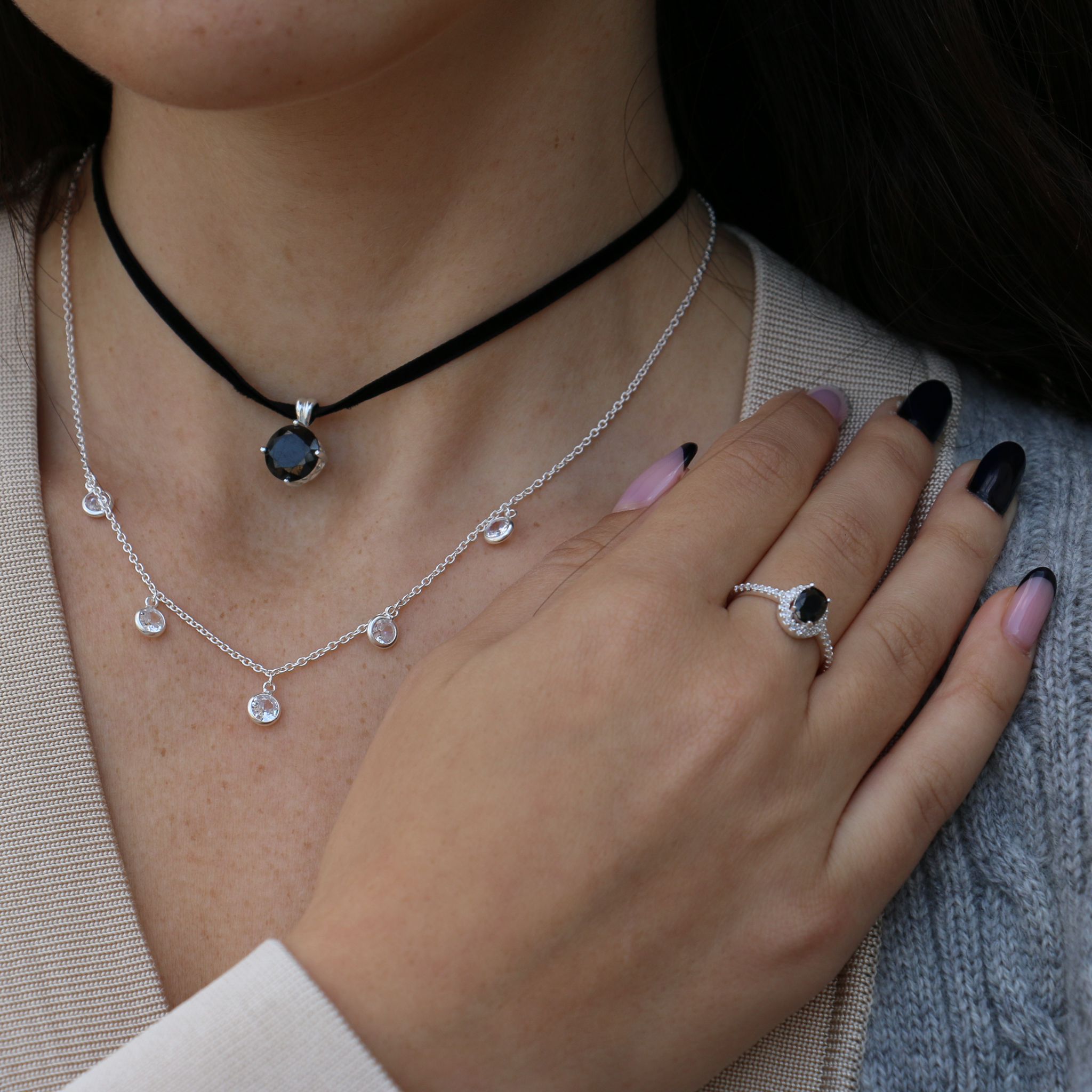 שרשרת מכסף – 5 עיגולי זירקונים לבנים