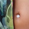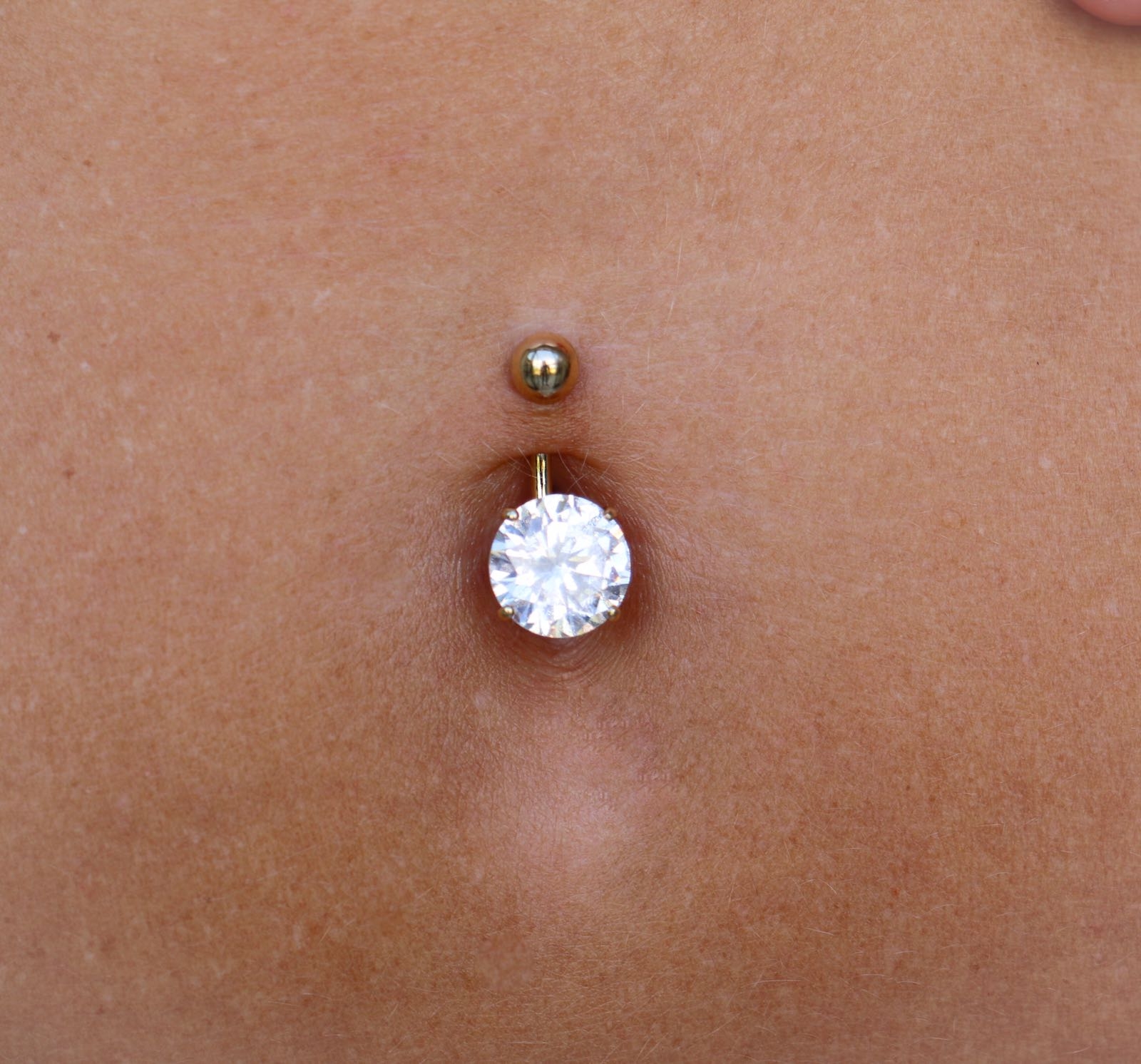 עגיל לטבור מזהב – עיגול קריסטל 10 ממ