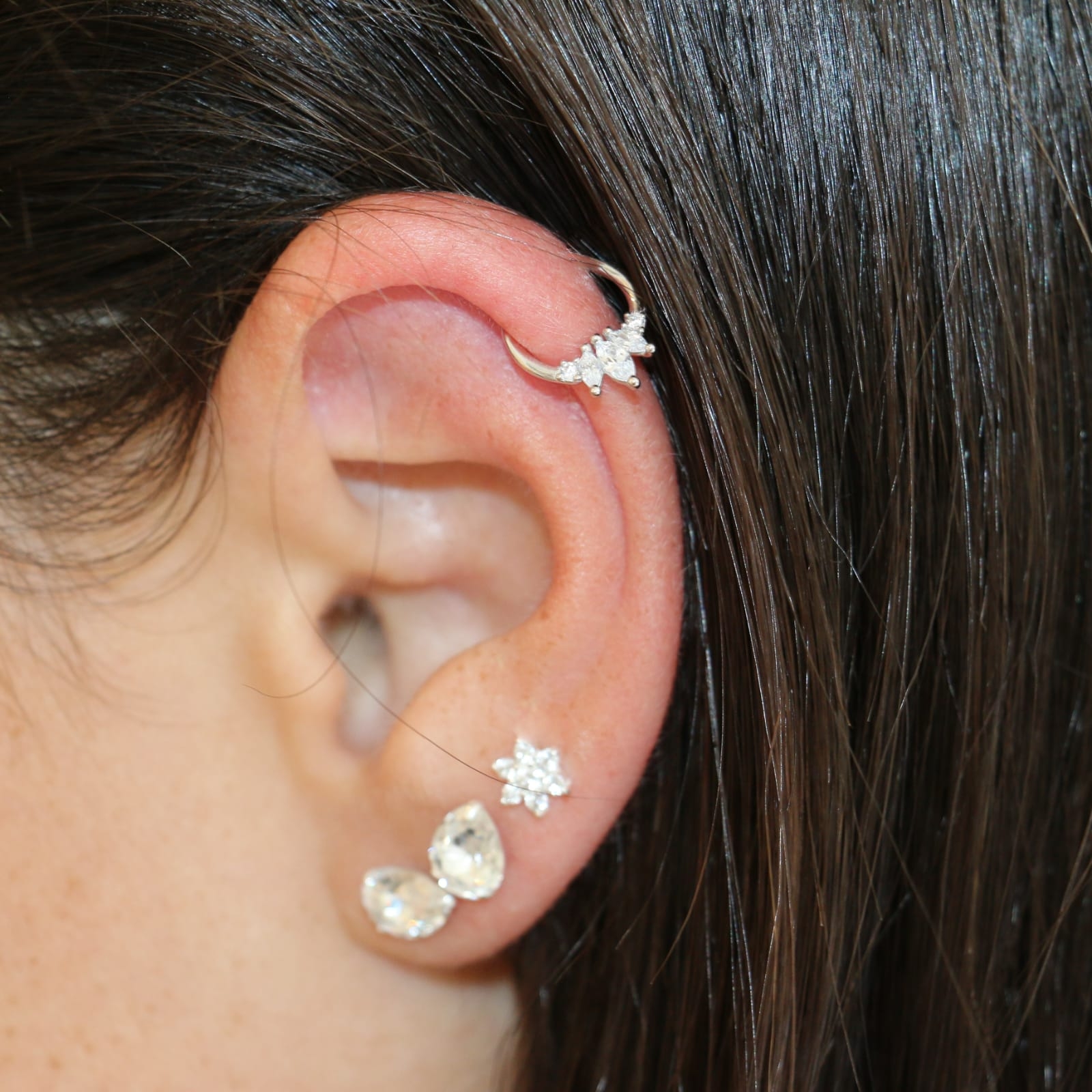 טבעת קליקר הליקס/ספטום מזהב 8*1.2 מ"מ פרח לוטוס וקריסטלים לבנים