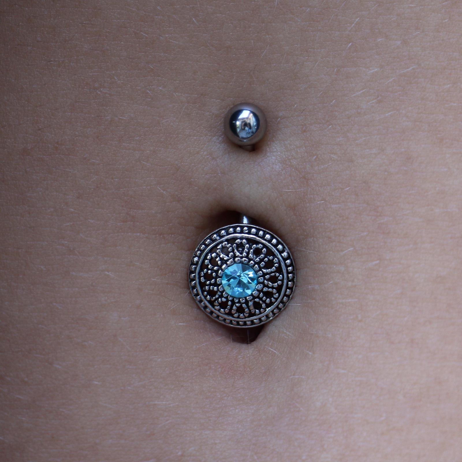 עגיל פירסינג בטבור – עיטור ביזנטי עיגול וקריסטל תכלת