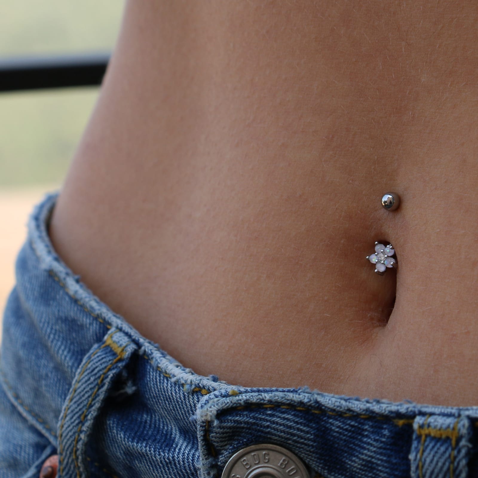 עגיל פירסינג בטבור – פרח ואופלים לבנים