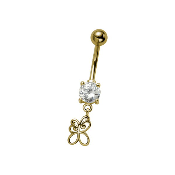 עגיל פירסינג בטבור – ציפוי זהב קריסטל ופרפר