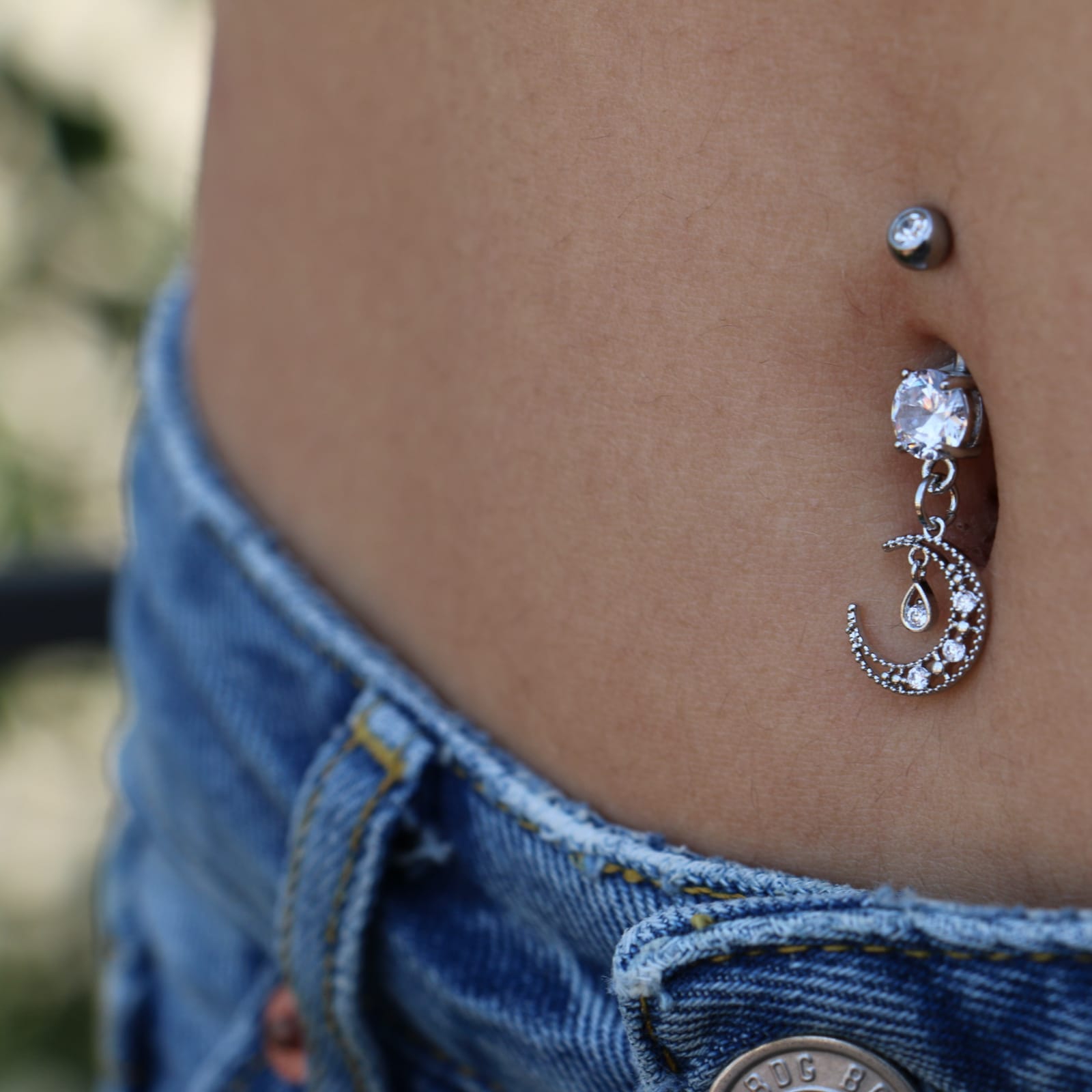 עגיל פירסינג בטבור -ירח קריסטלים לבנים זירקוניה טיפה