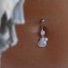 עגיל פירסינג בטבור - קריסטל עגול לבן ופעמונים נתלים
