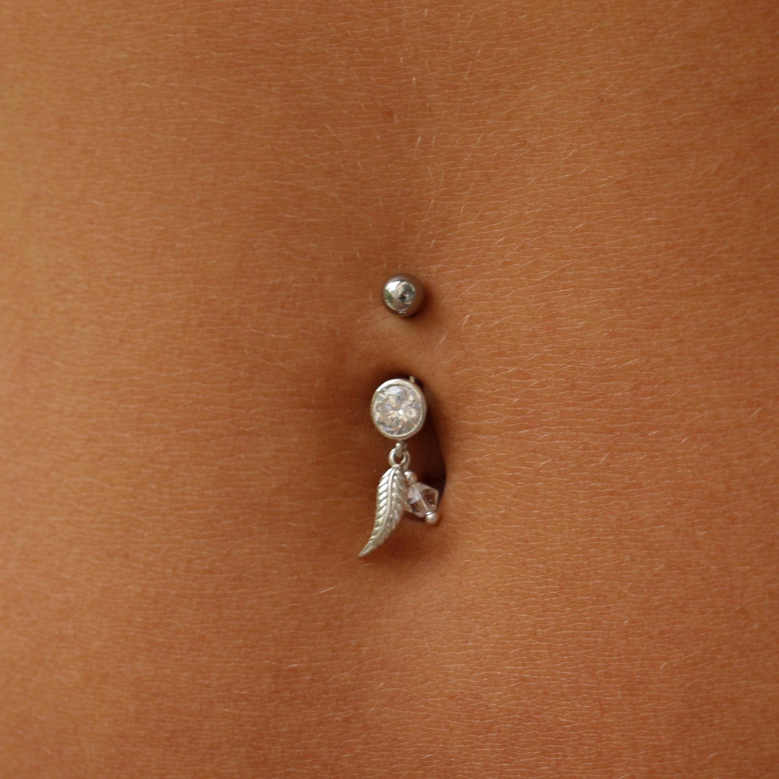 עגיל פירסינג בטבור – קריסטל לבן נוצה וחרוז