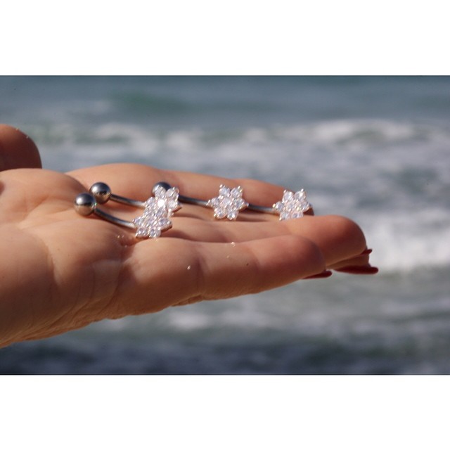 עגיל פירסינג בטבור – פרח קטן מקריסטלים