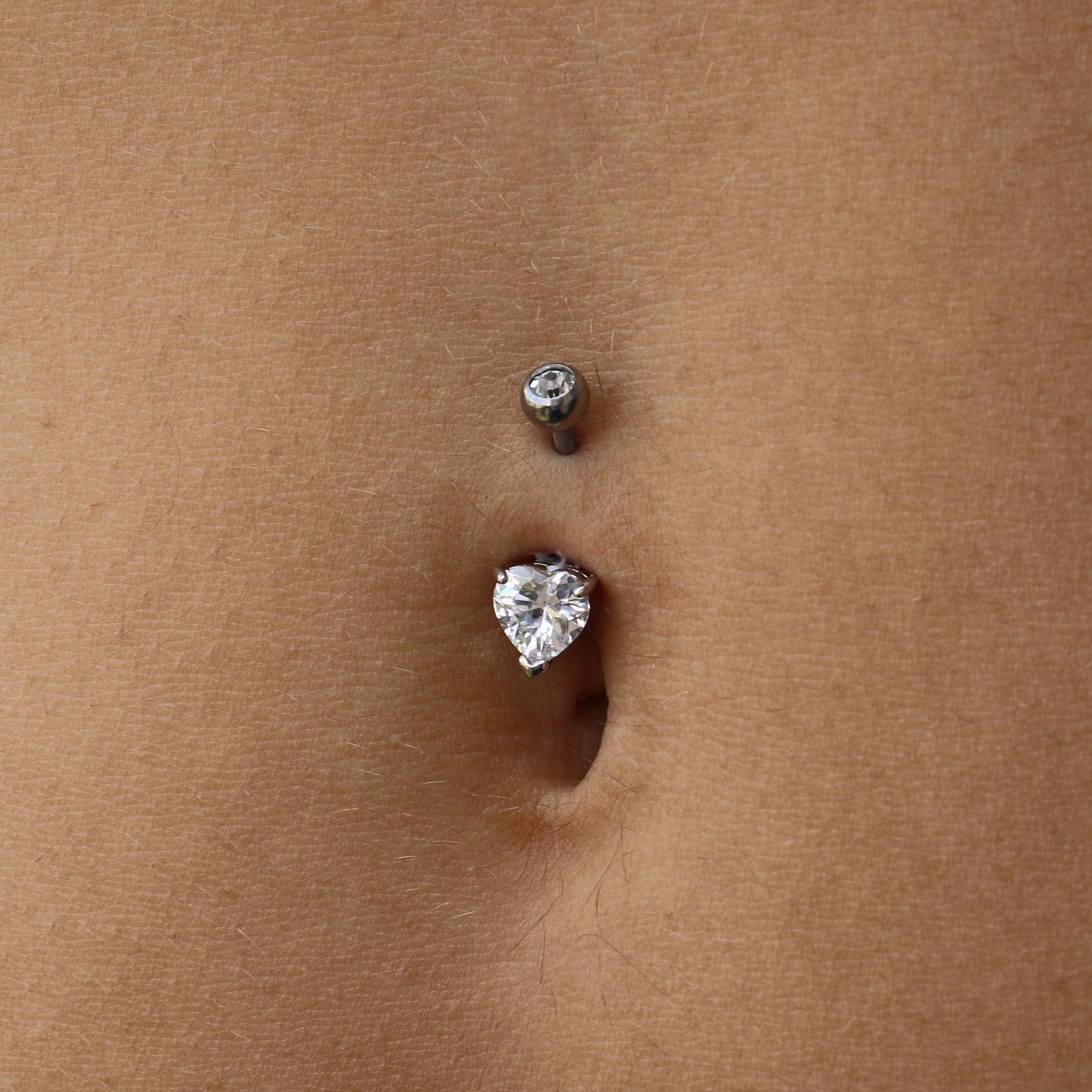 עגיל פירסינג בטבור – זירקוניה לב לבן