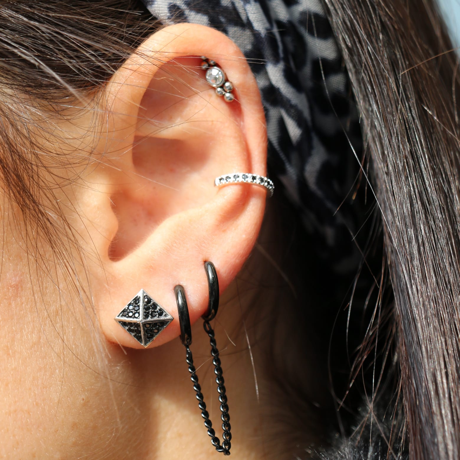 עגילי חישוק האגיס 8 מ"מ מסרג'יקל סטיל וציפוי שחור ושרשרת