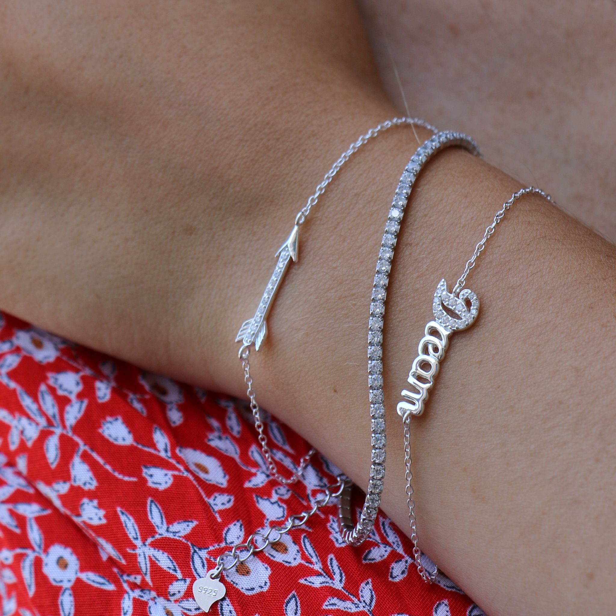 צמיד מכסף -DREAM וקריסטלים לבנים