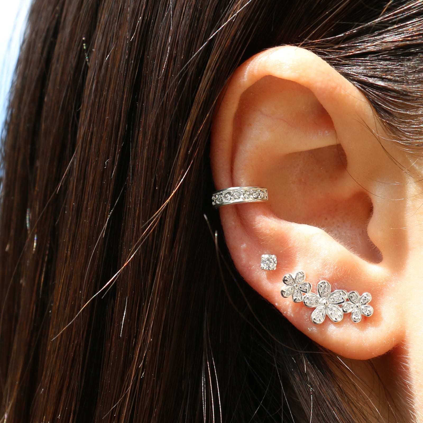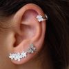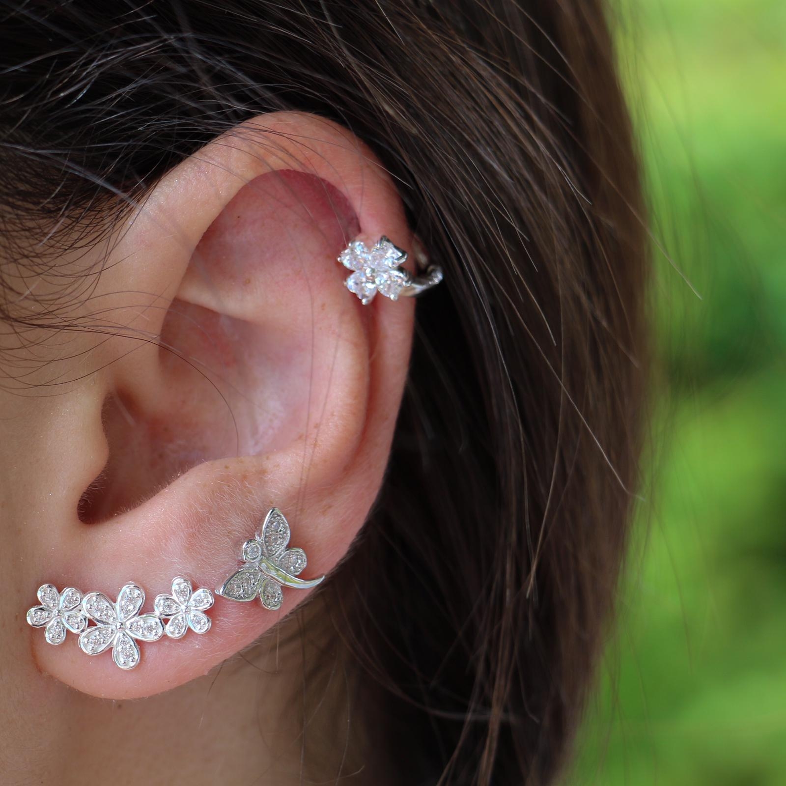 זוג עגילים מטפסים – פרחים וקריסטלים לבנים