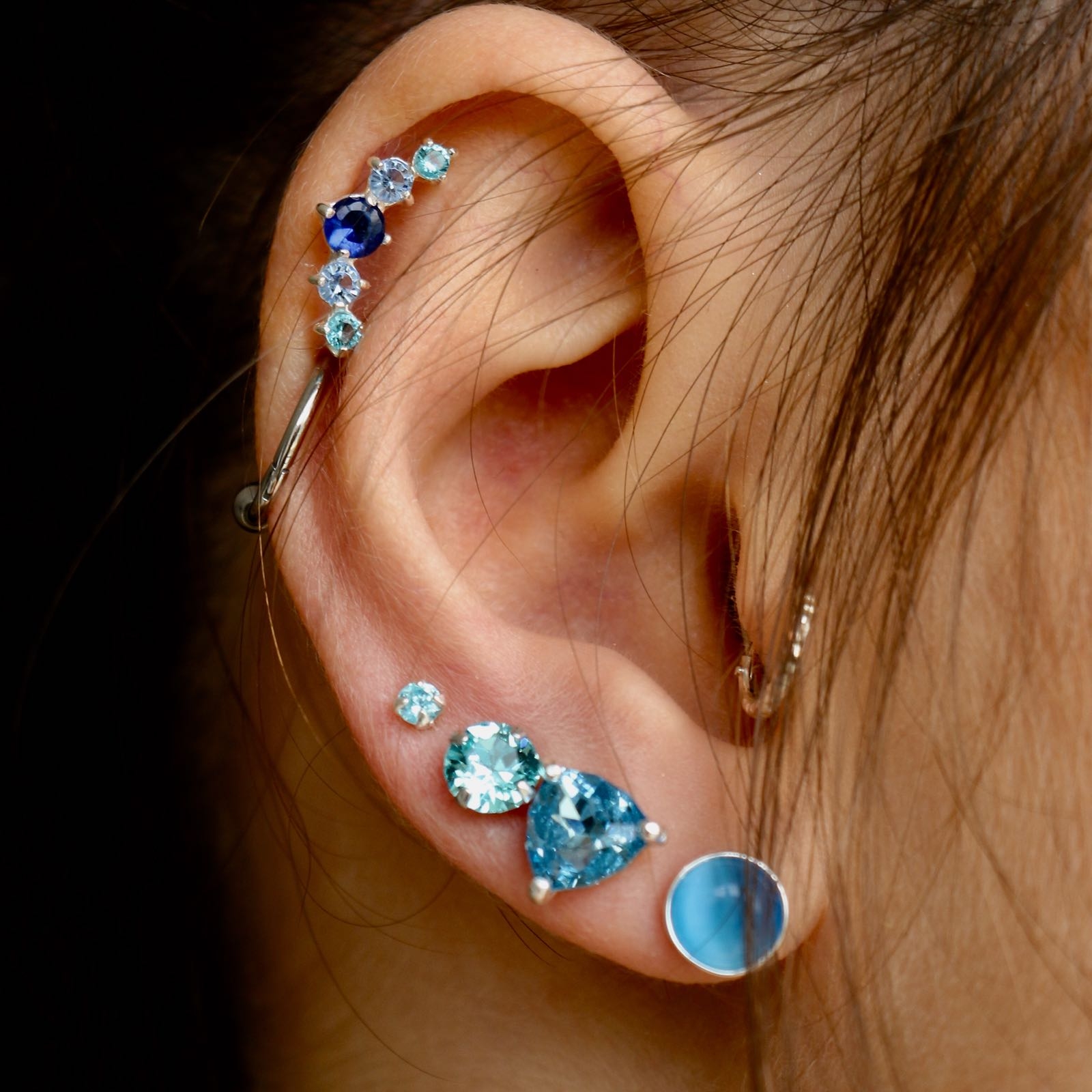 עגילים צמודים מכסף – 5 מ"מ קריסטל תכלת