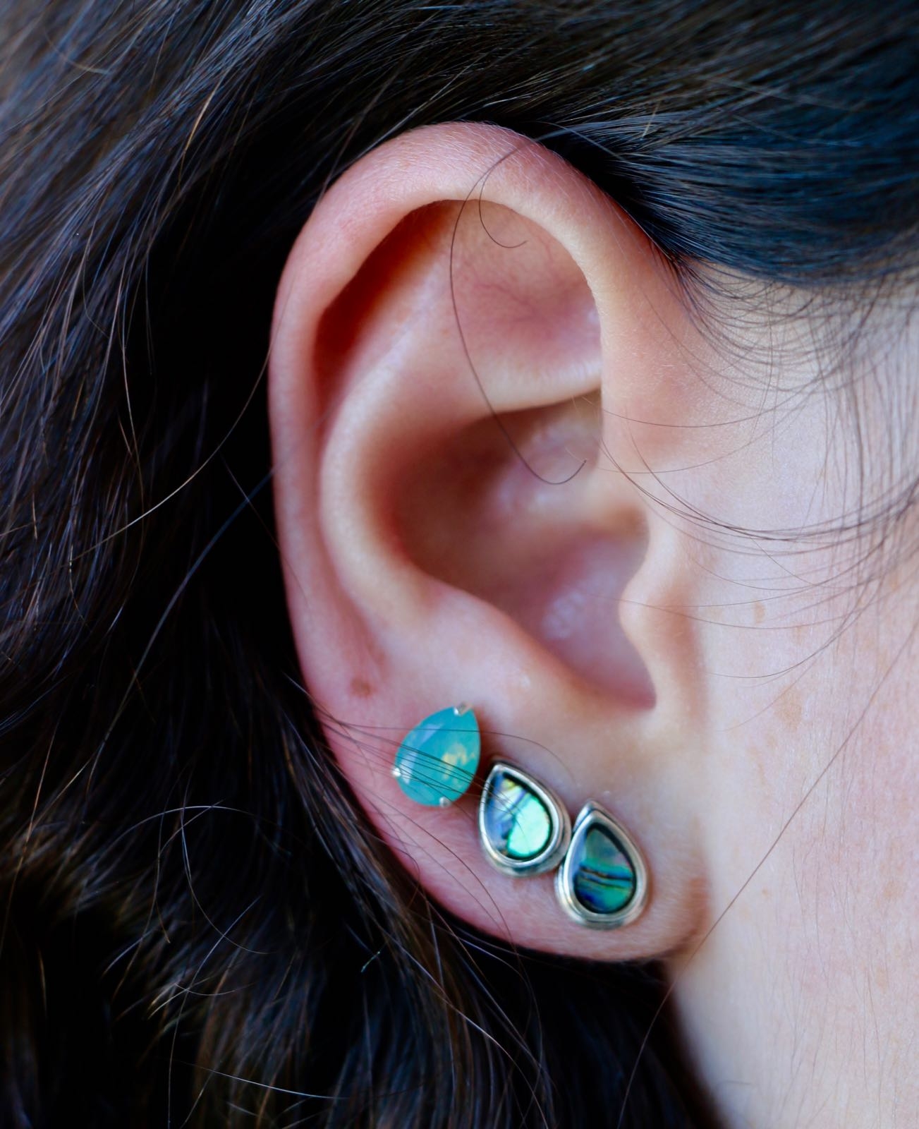 עגילים צמודים מכסף – טיפה אופל פסיפיק