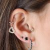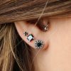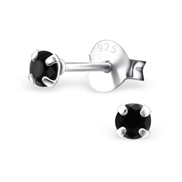 עגילים צמודים מכסף – עיגול משובץ קריסטל שחור 2.5 ממ