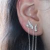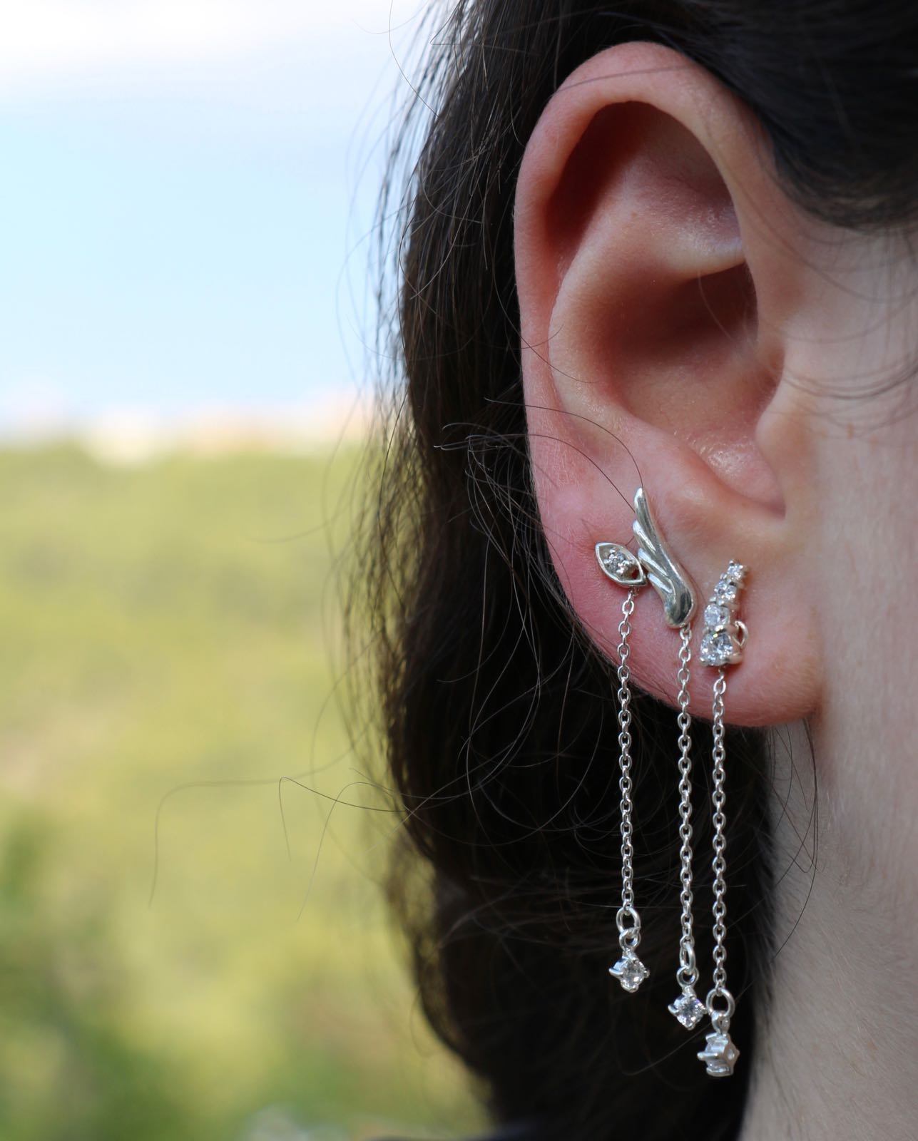 עגילים צמודים ושרשרת מכסף כנף וקריסטל לבן