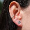 העגיל נתפס בחלק האמצעי של האוזן ללא חור באמצעות לחיצה עדינה ויוצר מראה של פירסינג קונץ'.
