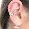 העגיל נתפס בחלק האמצעי של האוזן ללא חור באמצעות לחיצה עדינה ויוצר מראה של פירסינג קונץ'.