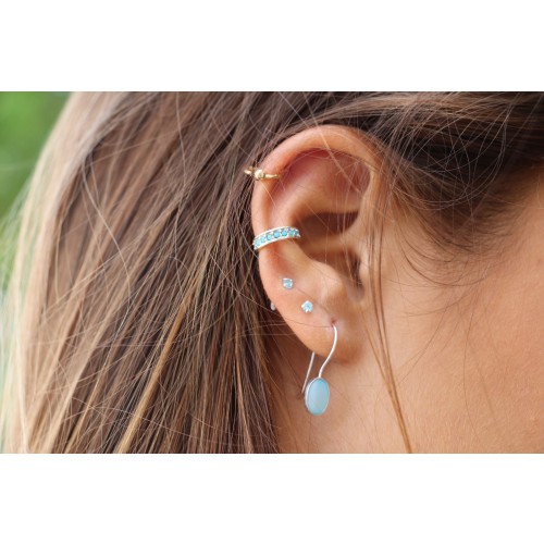עגיל ללא חור קליפ מכסף וקריסטלים טורקיז