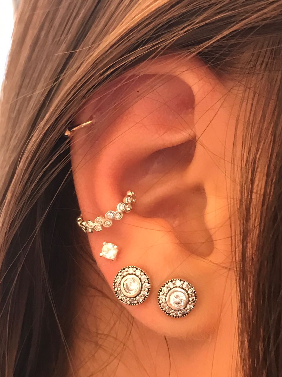 העגיל נתפס בחלק האמצעי של האוזן ללא חור באמצעות לחיצה עדינה ויוצר מראה של פירסינג קונץ'.