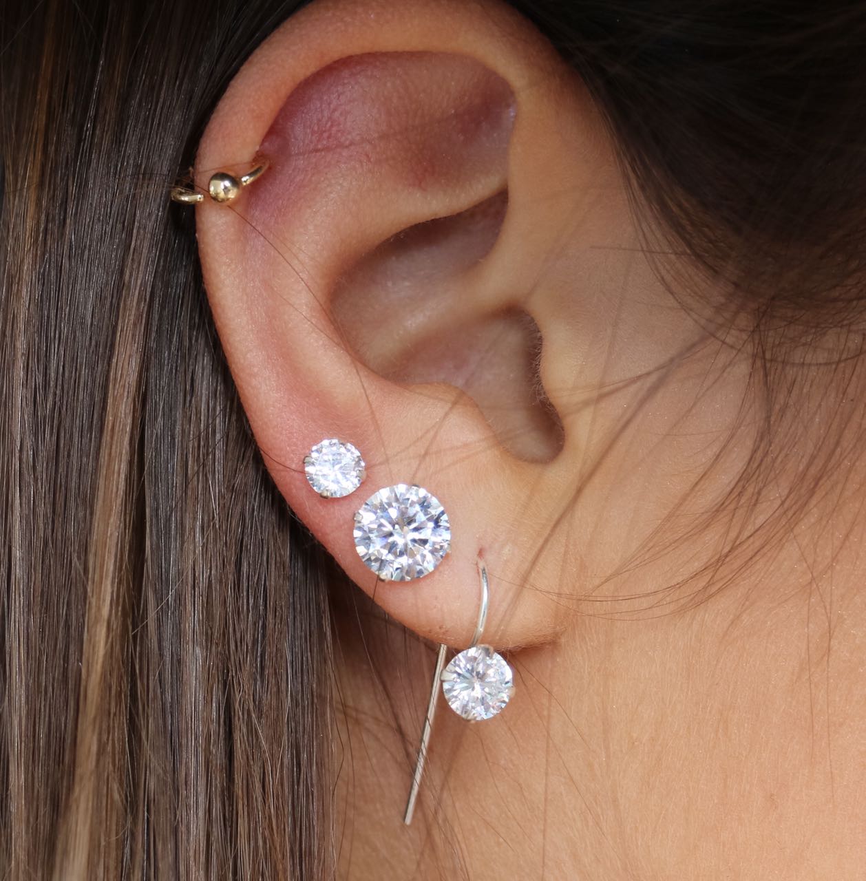 עגילים צמודים -קריסטל עיגול לבן 8 מ"מ