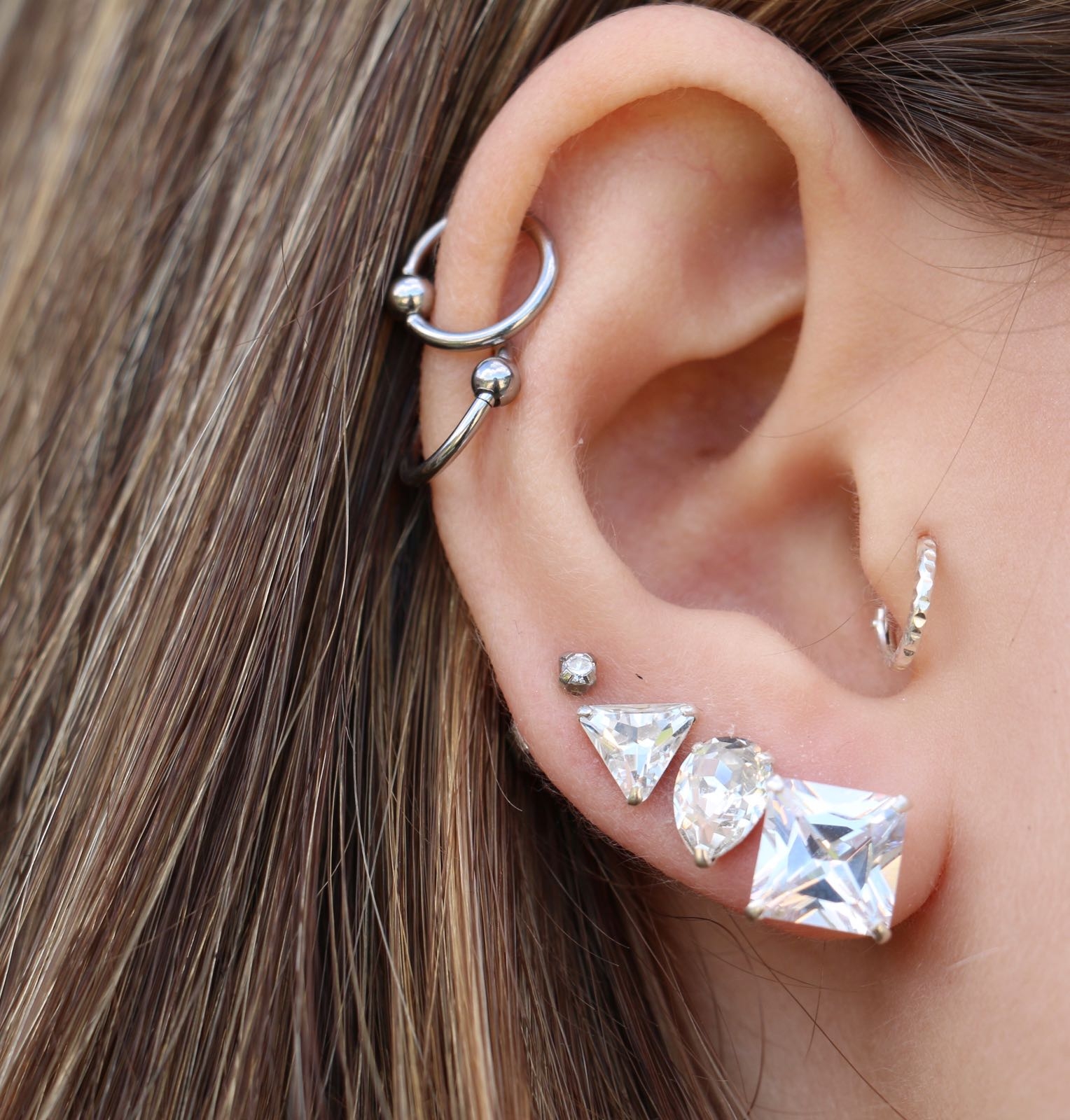 עגילים צמודים -קריסטל ריבוע לבן 8 מ"מ