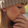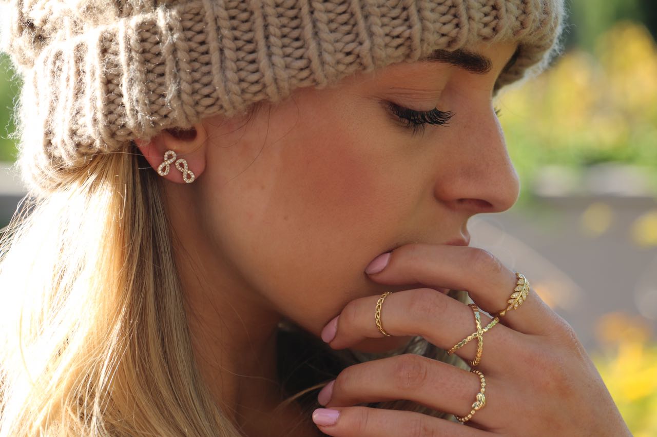 עגילים צמודים -מכסף וציפוי זהב אינפיניטי וקריסטלים לבנים