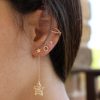 עגילים צמודים מכסף וציפוי זהב – עיגול וקריסטלים לבנים
