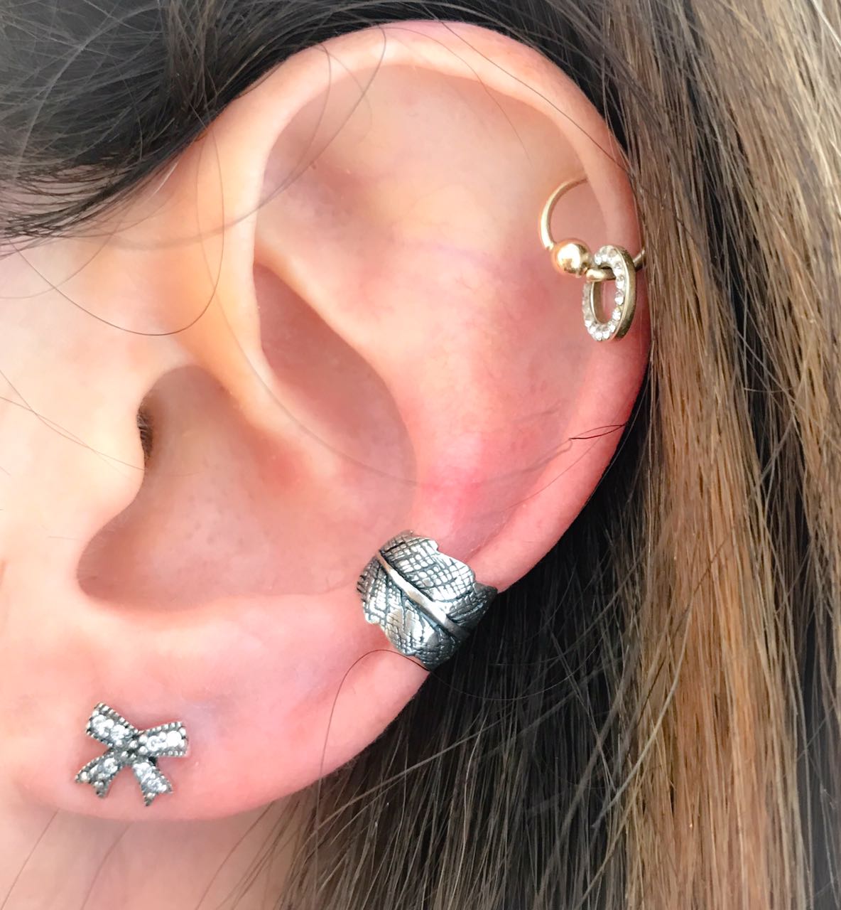 עגילים אינדונזים צמודים מכסף – פפיון וקריסטלים לבנים