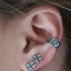 עגילים אינדונזים צמודים מכסף – תלתן וקריסטלים לבנים