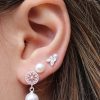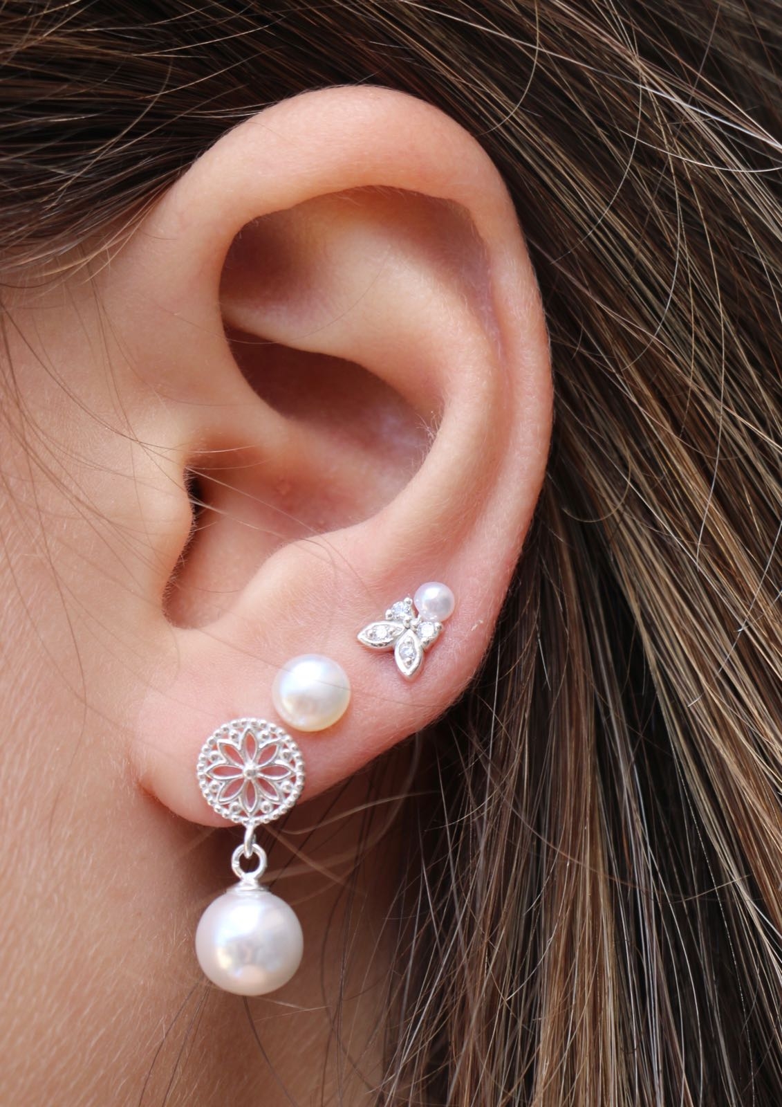 עגילים צמודים – פנינה 8 מ"מ שיבוץ עלים
