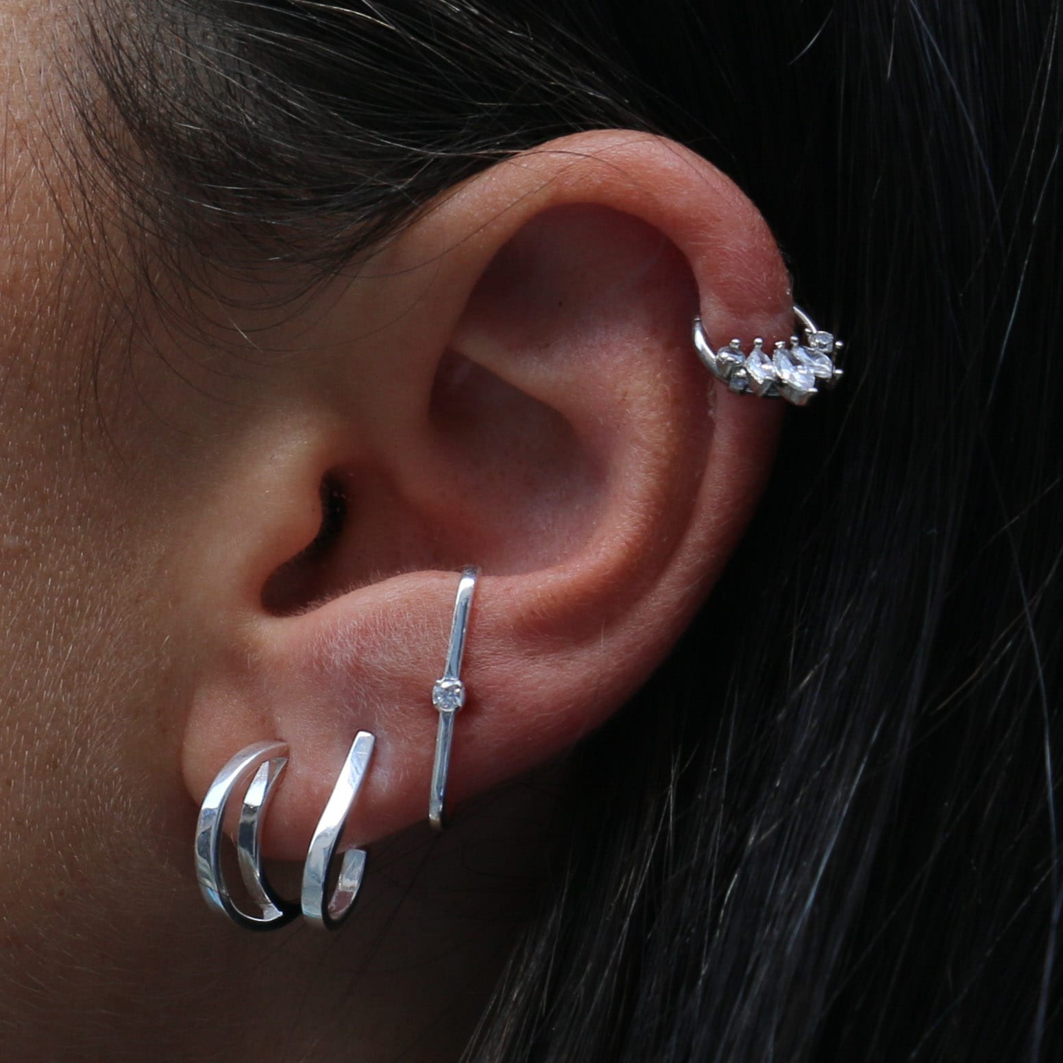 עגילים צמודים מכסף עם קריסטל לבן