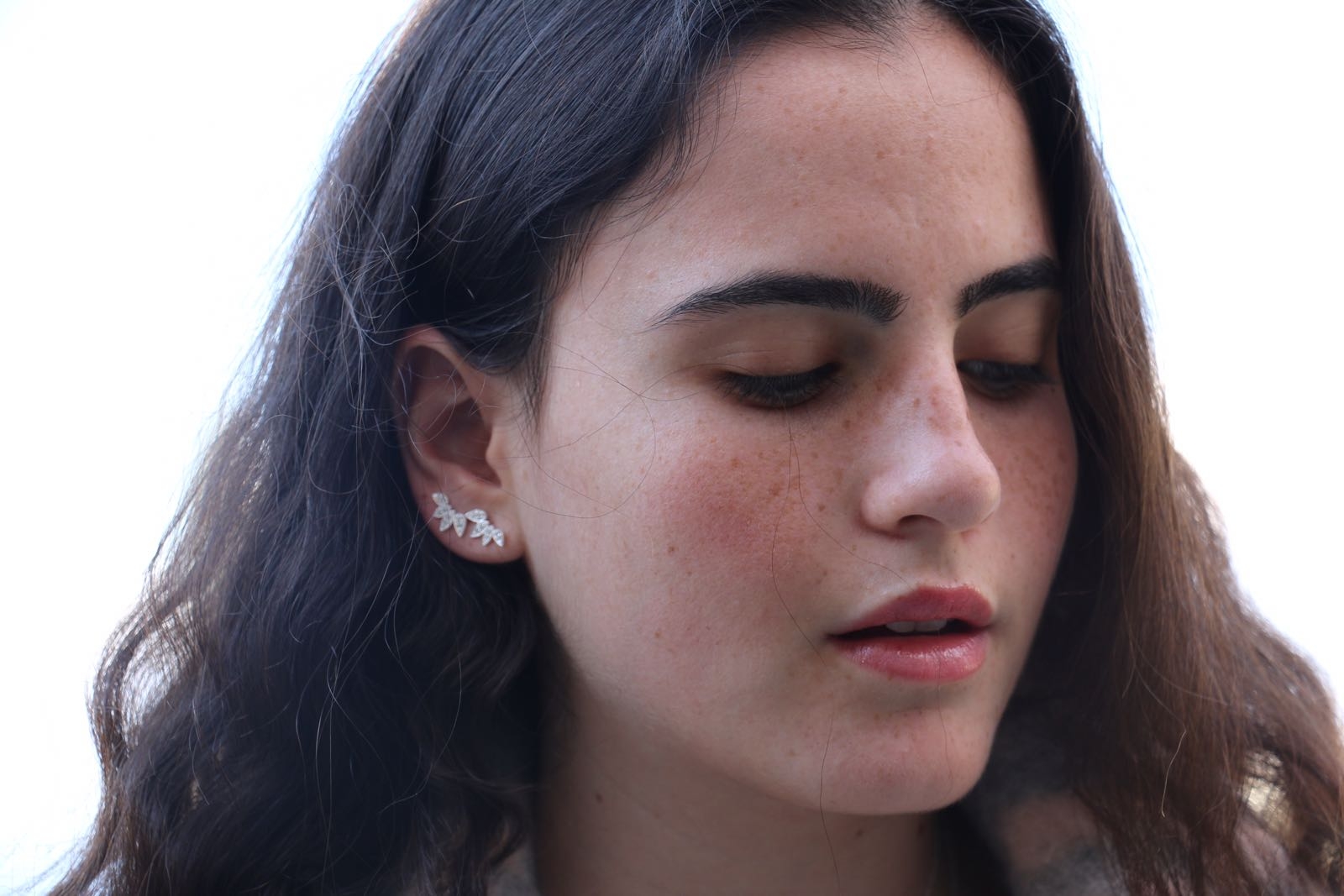 עגילים צמודים מכסף – מניפה של טיפות וקריסטלים לבנים