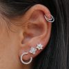 עגילים צמודים מכסף פרח עם קריסטלים לבנים